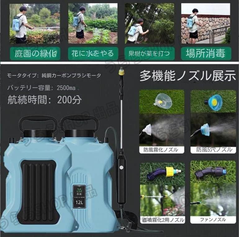 電動噴霧器 充電式 電動噴霧器 自動噴霧器 12L バッテリー式 除草剤 電動噴霧器 害虫駆除 農薬消毒 肥料 圧力調整可家庭用 グリーンxhw0079