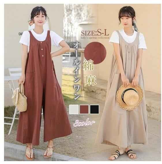 キャミワンピース レディース オールインワン きれいめ 着痩せ オシャレ ロング丈 M アプリコット