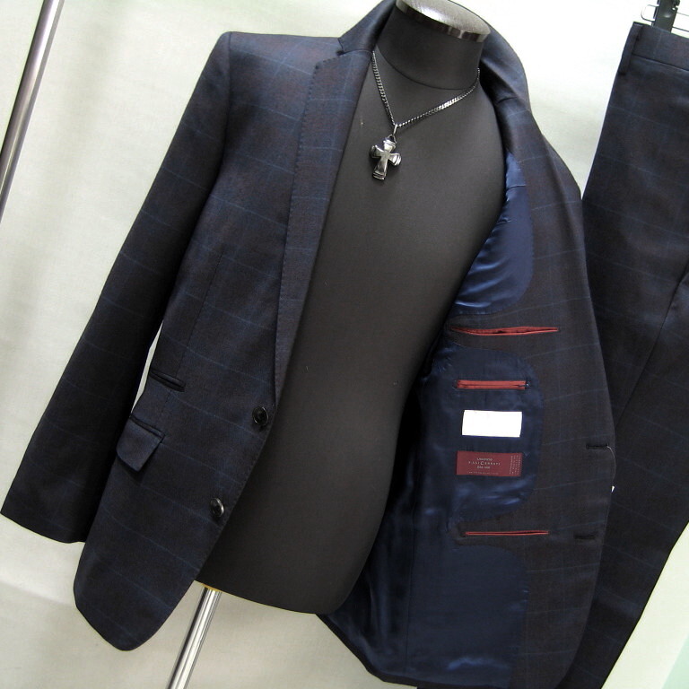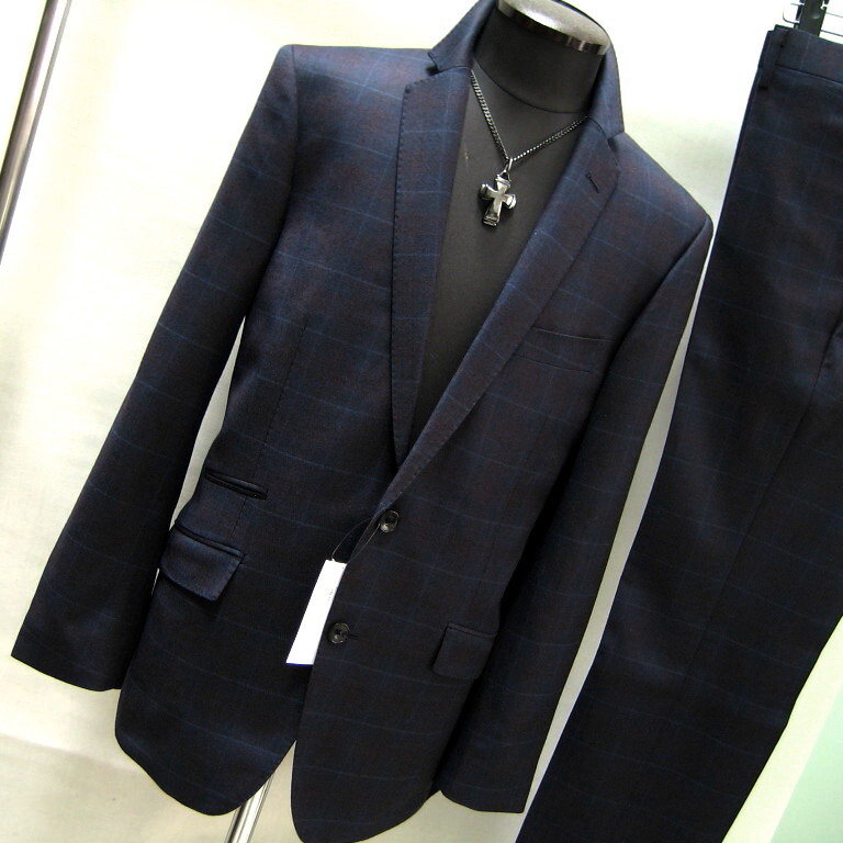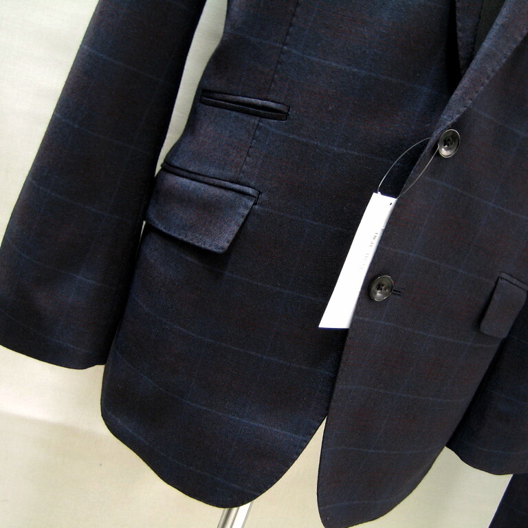 新品 9.2万 ハイストリート L スーツ イタリア CERRUTI チェック ネイビー サンプル 164