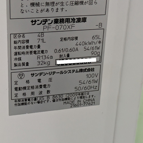 冷凍ストッカー サンデン・リテールシステム PF-070XF 業務用 中古/送料別途見積