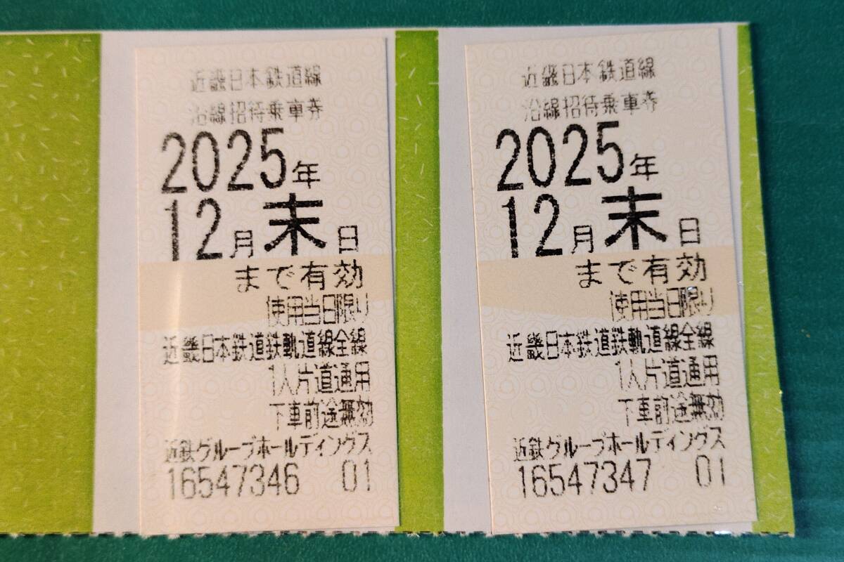 近鉄株主優待乗車券が2枚です。2枚で1セットです。
