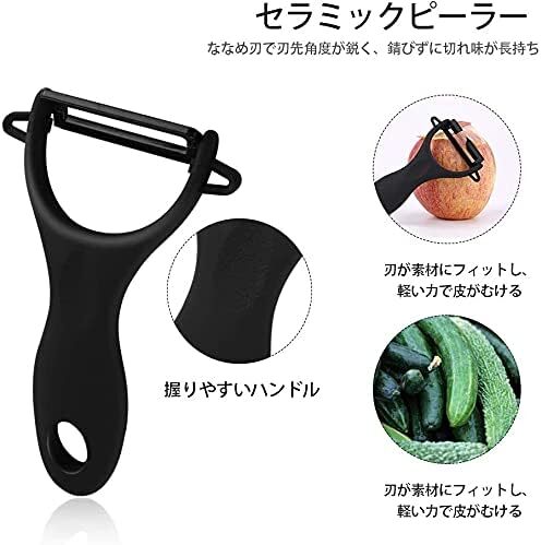 同セットの皮むき器と料理はさみでも、セラミック製刃を使用しています。
