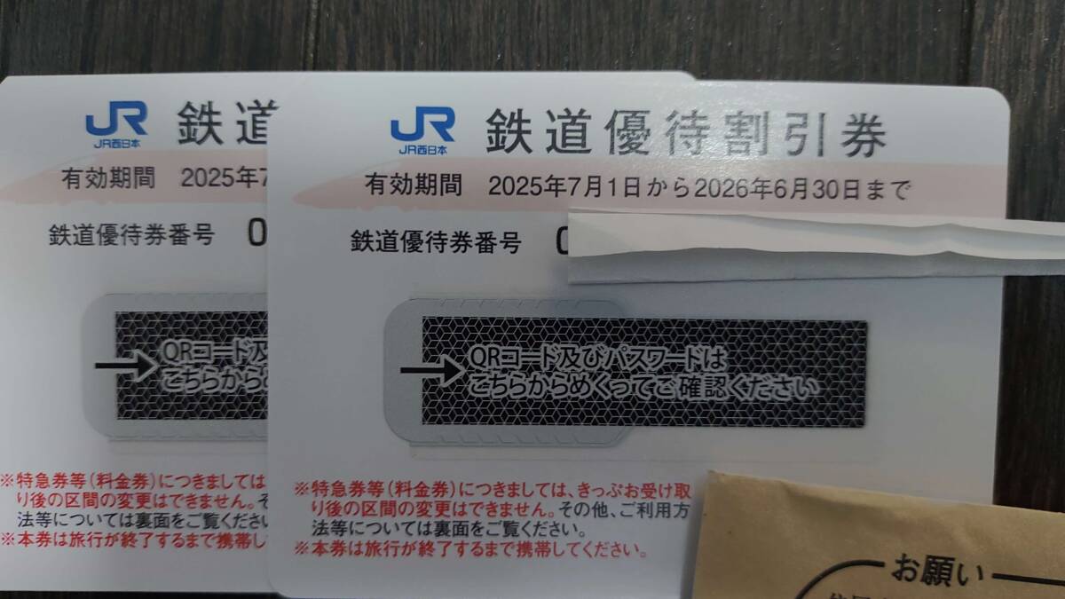 即決!ネコポス込! JR西日本 株主優待券 鉄道割引券2枚 2026年6月30日迄