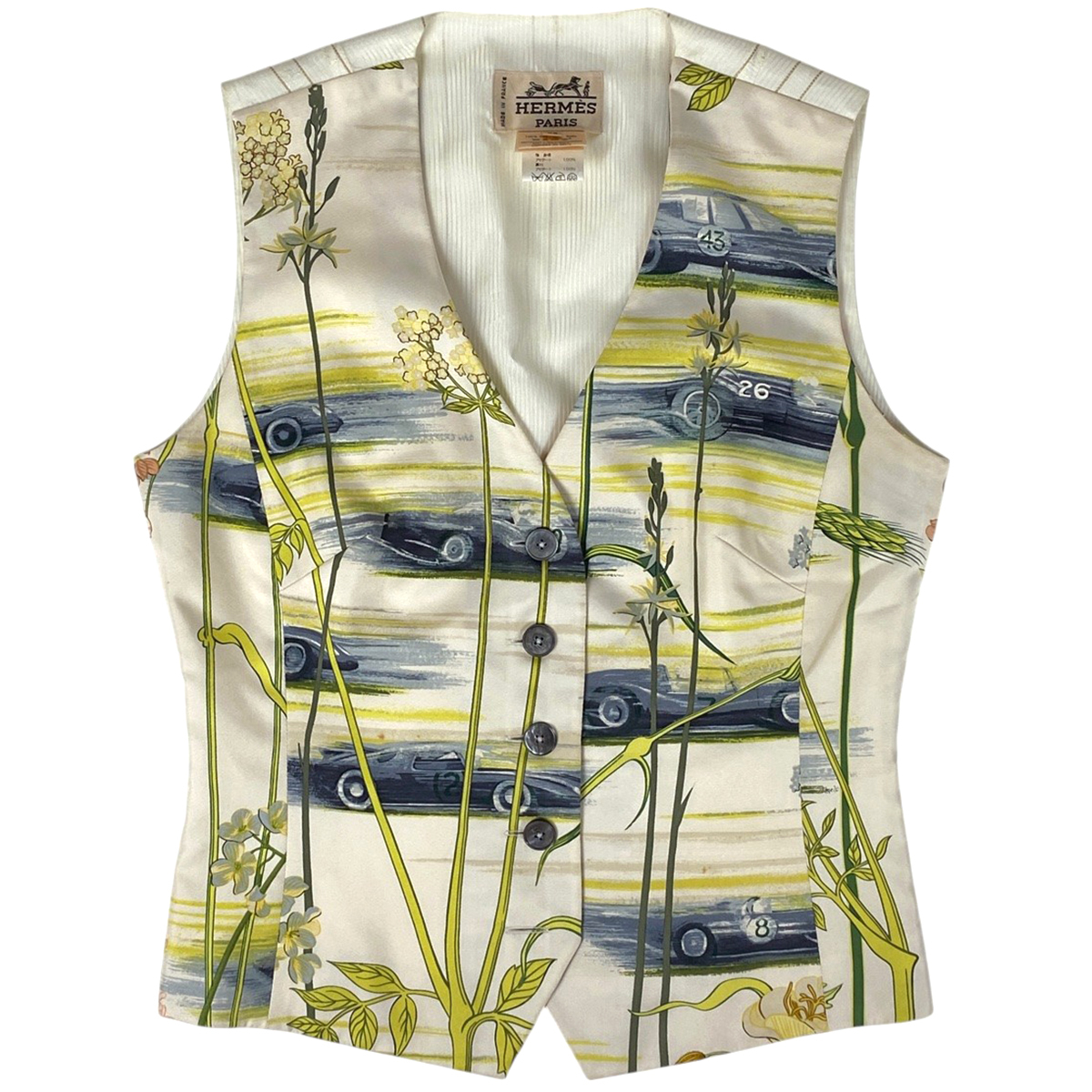 | エルメス HERMES シルク ベスト シングル カーレース ジレ ベスト ホワイト マルチカラー レディース 【中古】 |