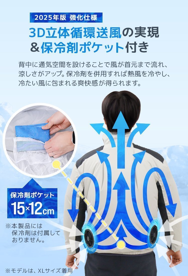 | \最大7500rpmの大風量ファン&2025改良モデル登場!/ 夏場の屋外作業やレジャーに最適な空調作業服が登場! 背面に内蔵されたファン付きウェアで、効率よく体内の熱を逃がし、長時間の活動を快適にサポートします。 3段階風量調節機能で、お好みの風量にカスタマイズ可能。 三段階の切り替えで、状況に合わせた涼しさを実現。 強風送風モード搭載で、炎天下でもしっかりと風を感じられ、熱中症対策にも。 作業着でありながらおしゃれなデザインで、現場はもちろん、アウトドアやガーデニングにもぴったり。 UVカット素材を採用しており、紫外線から肌を守ります。 背中には保冷剤ポケット付きで、さらに涼しさを追求!冷却効果がアップし、爽快な着心地。 【商品詳細】 内容:作業ウェア、ファン×2、ケーブル、日本語取扱説明書 カラー:アッシュグレー サイズ:Mサイズ 電源入力:5V/2.1A 風量調節:3段階 素材:ポリエステル100% |