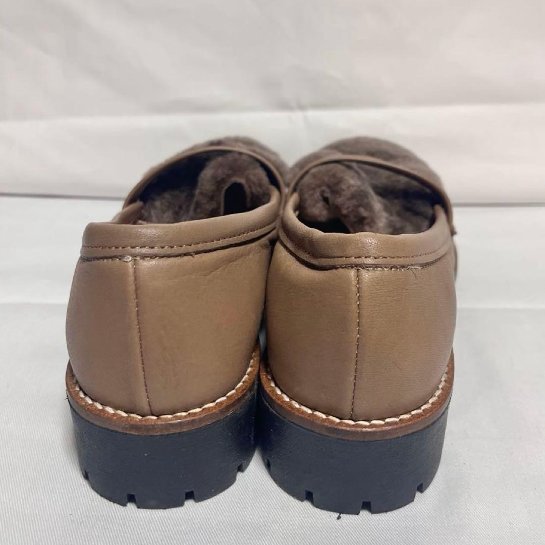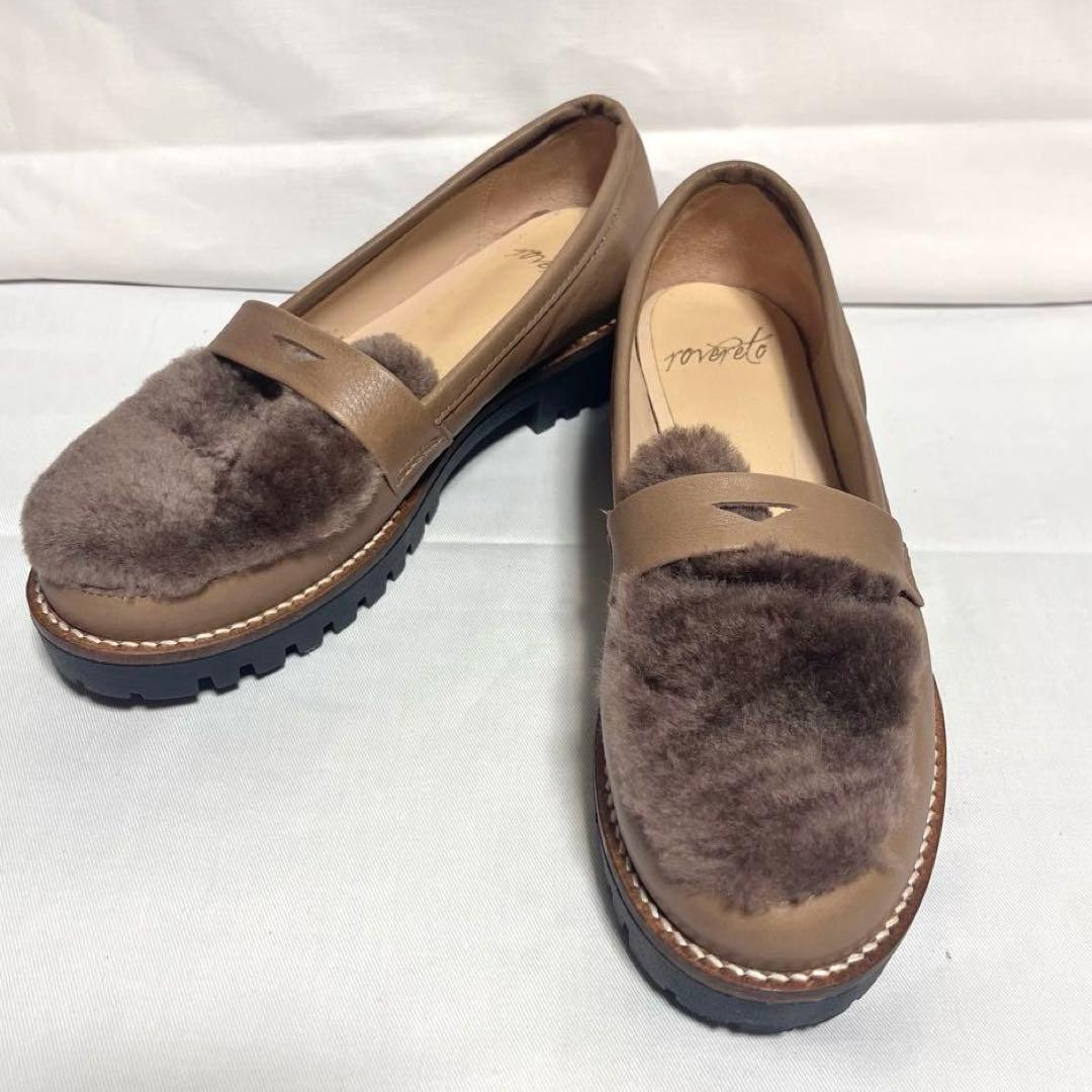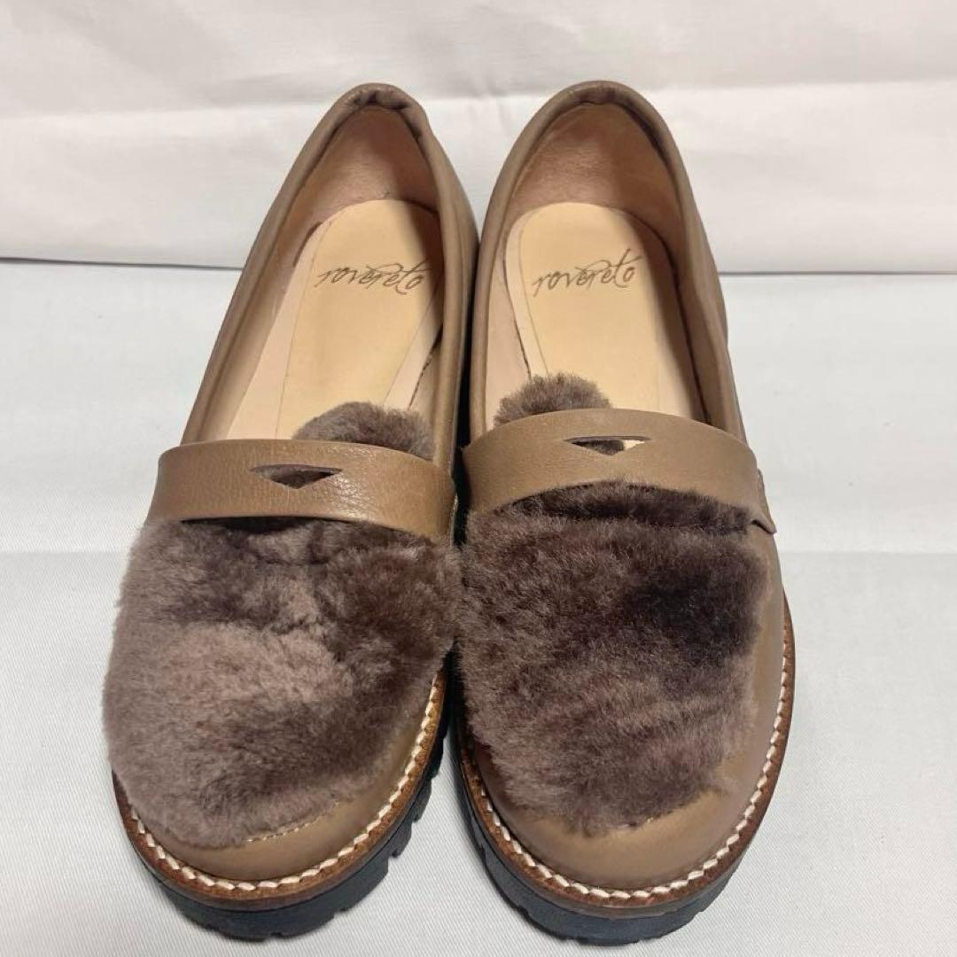 Roveretoスペイン製 ファー付きローファー 22.5cm ベージュ 厚底