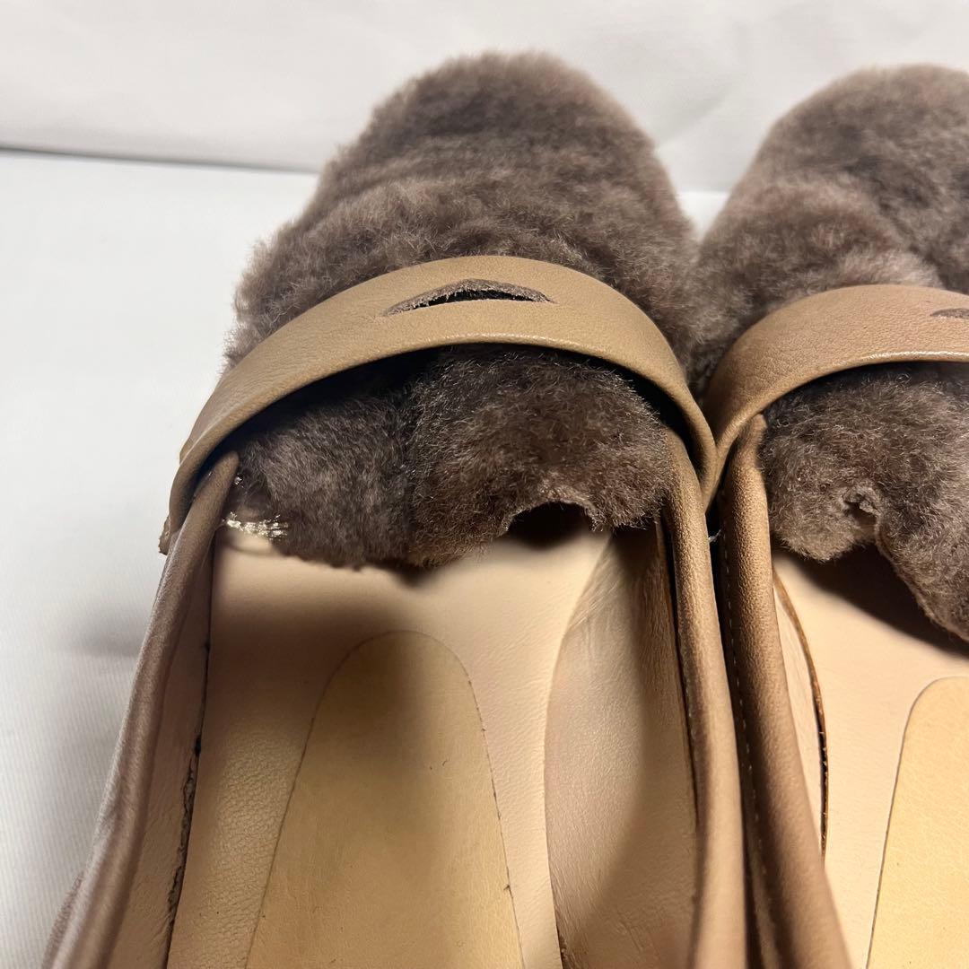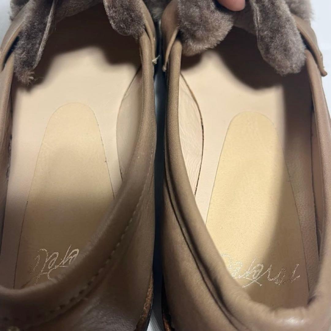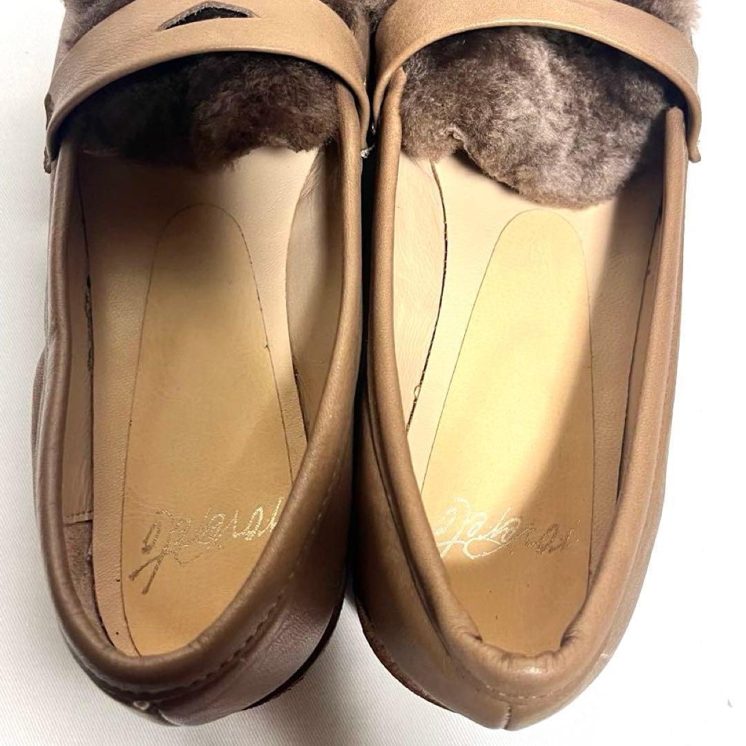 Roveretoスペイン製 ファー付きローファー 22.5cm ベージュ 厚底