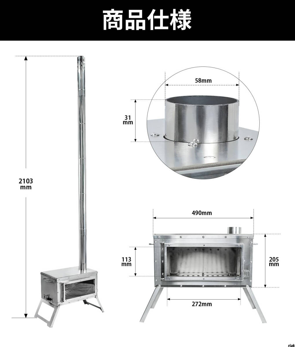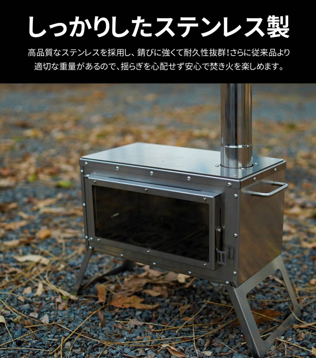 【耐熱性・耐低温性に優れ、アウトドア環境でも使用可能】 薪ストーブ キャンプストーブ コンパクト テント用暖炉 ステンレス 焚き火台