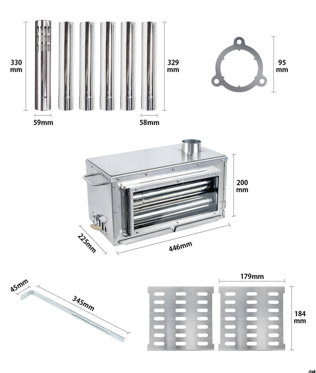 煙突パイプ:長さ329mm × 直径58mm(オス直径57mm、メス直径59mm)