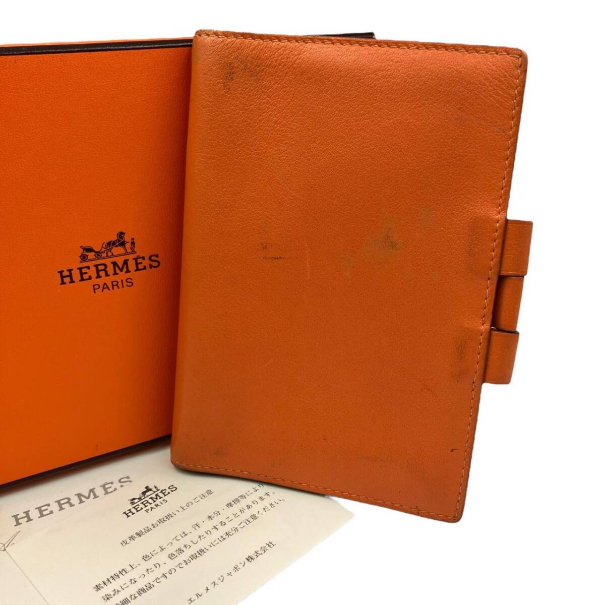 | HERMES エルメス アジェンダGM 手帳カバー レザー オレンジ系 □B刻印 |