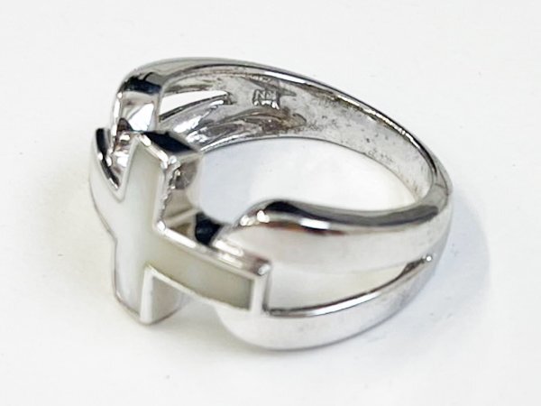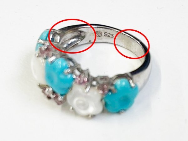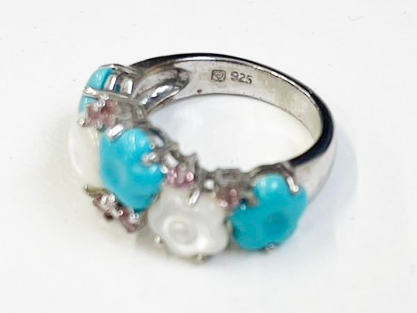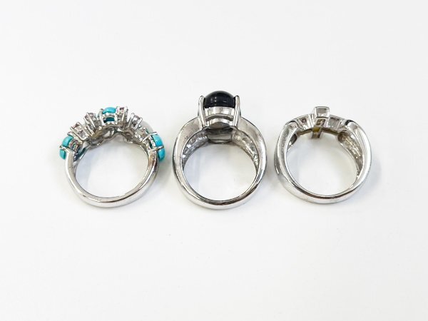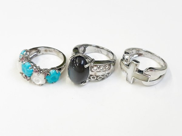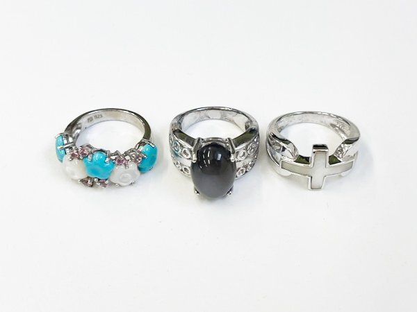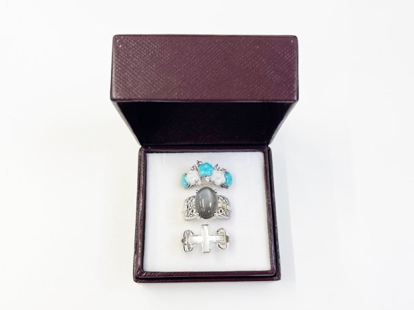 指輪 リング 3点セット925 Silver カラーストーン フラワー クロス 十字架/シルバー×ホワイト×ブルー×グレー/10号/訳有/1円スタート/AY