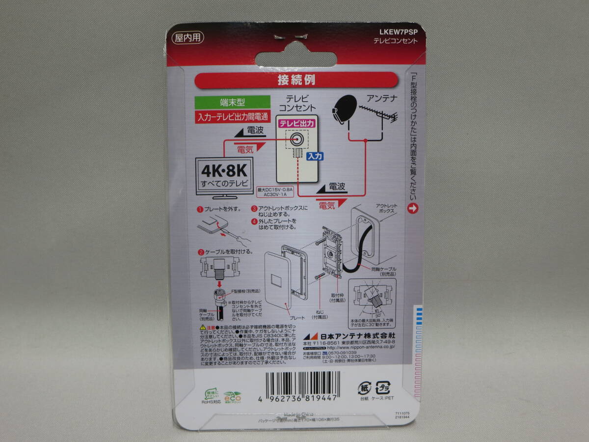 25261 工具祭 テレビコンセント LKEW7PSP 日本アンテナ 端末型 室内用 入力 テレビ出力間電通 未使用 保管品 詳細は画像要確認 | |||||||||||||||||||