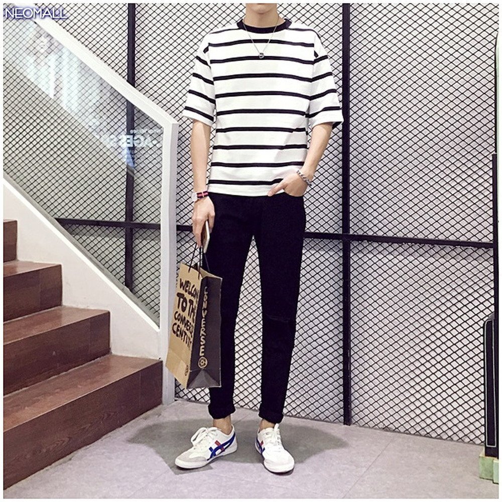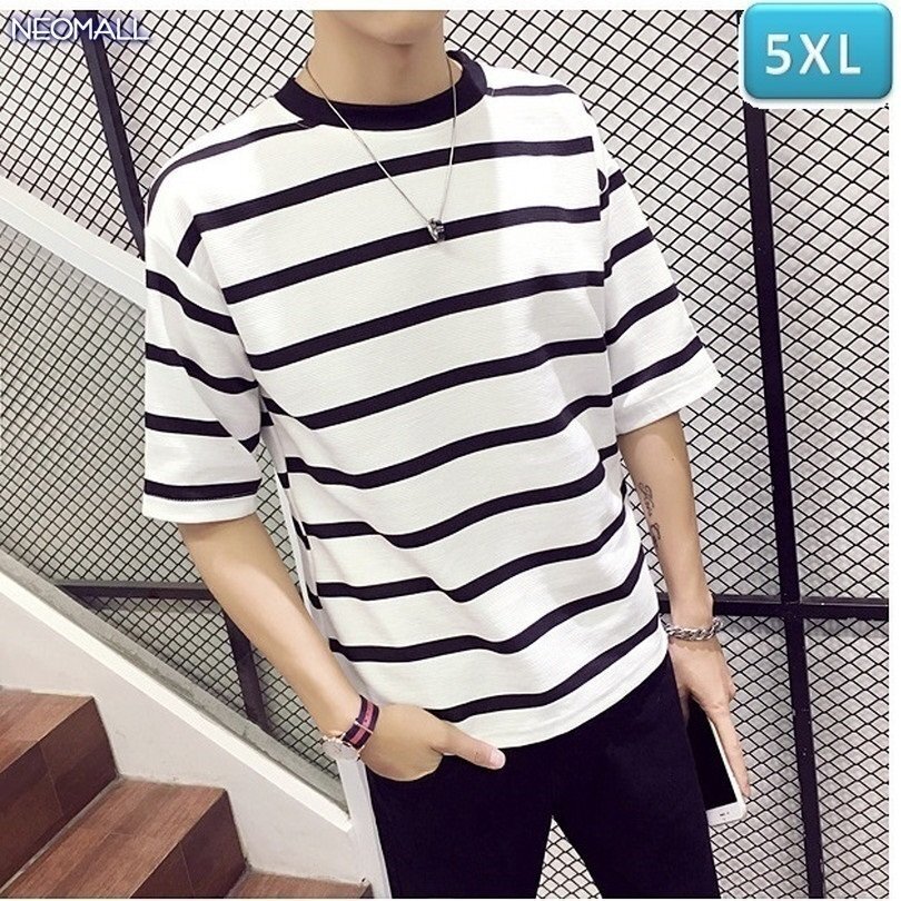 春夏にピッタリ ☆ 丸首 半袖 ボーダー Tシャツ【306】ホワイト 5XLサイズ トップス お洒落 シンプル 春夏