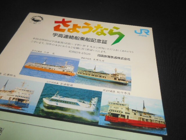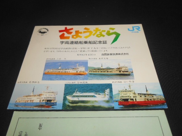 JR四国 さようなら宇高連絡船乗船 記念証伊予丸と記念カード土佐丸 計2枚 昭和63年 送料140円