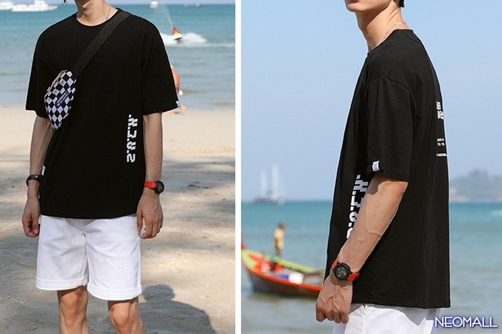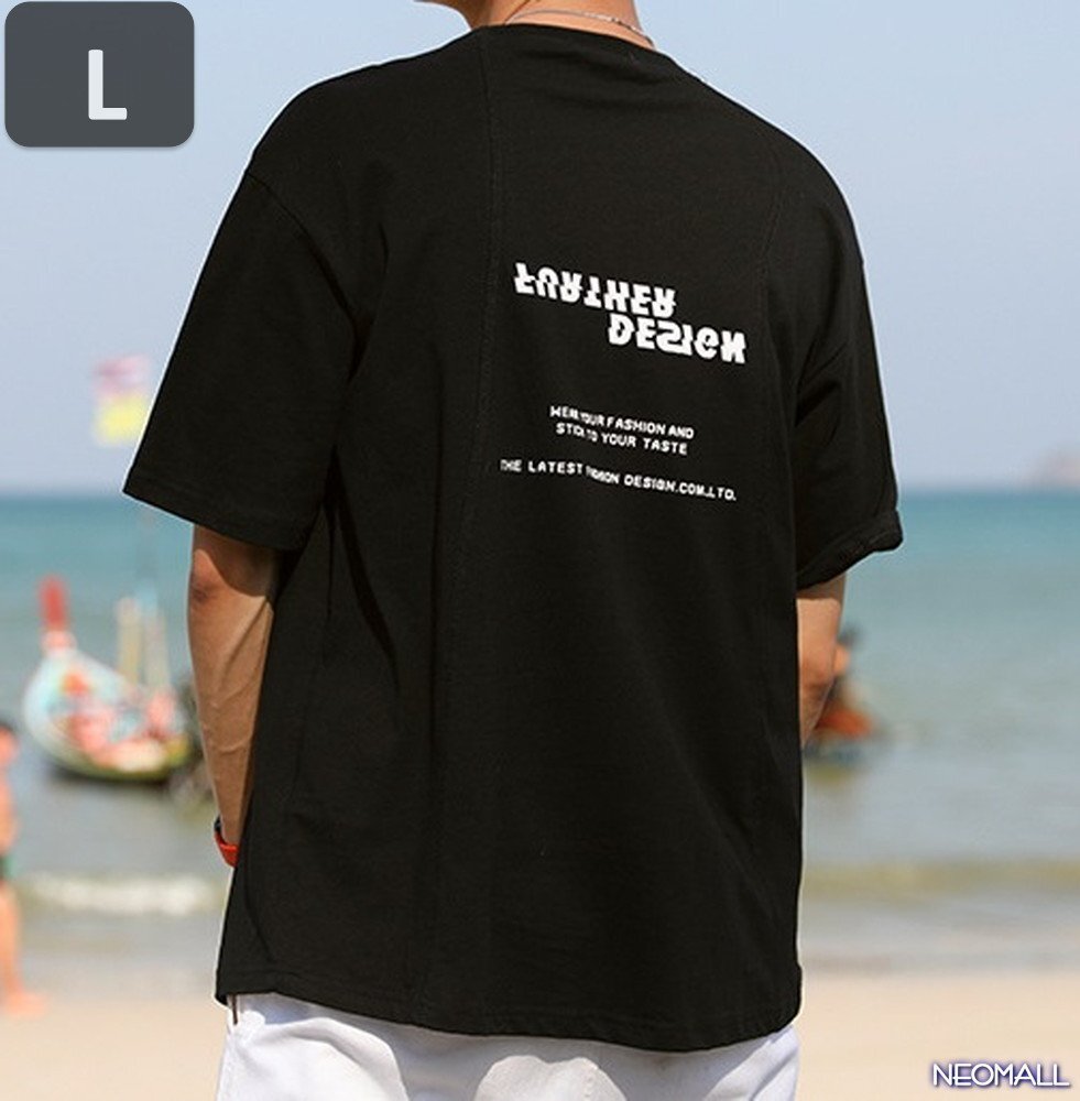 人気商品 ☆ 丸首 半袖 Tシャツ【472】 ブラック Lサイズ トップス シャツ シンプル イラスト デザイン 春夏