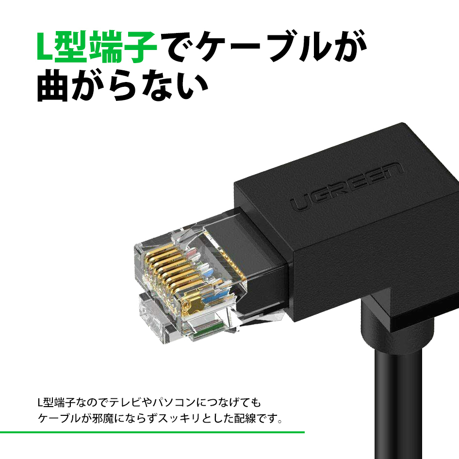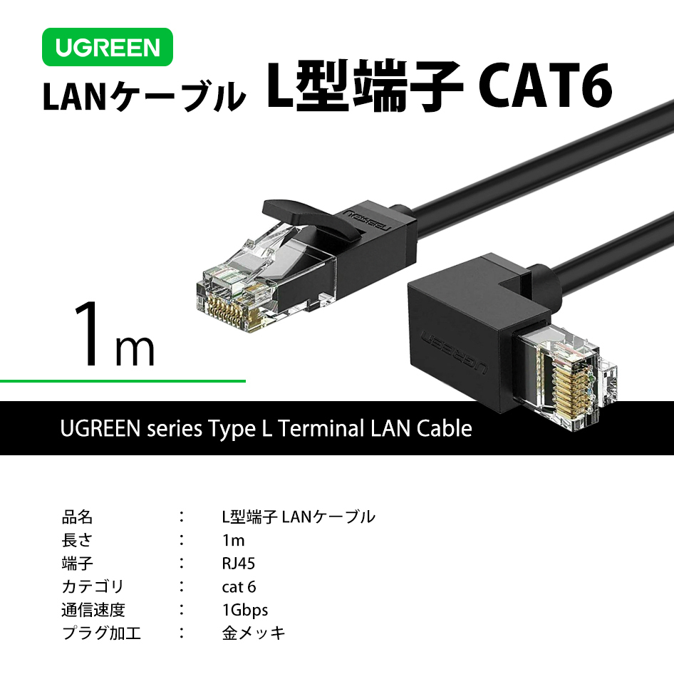 UGREEN L型 端子 LAN ケーブル CAT6 1m LANケーブル 有線 ノートパソコン PC 30833 送料無料