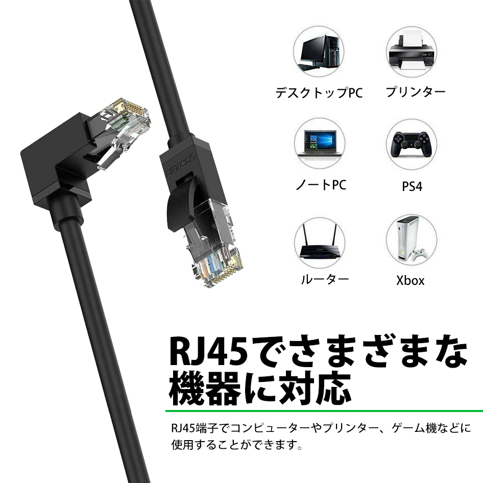 <UGREEN L型 端子 LAN ケーブル CAT6 1m LANケーブル 有線 ノートパソコン PC 30833 送料無料>