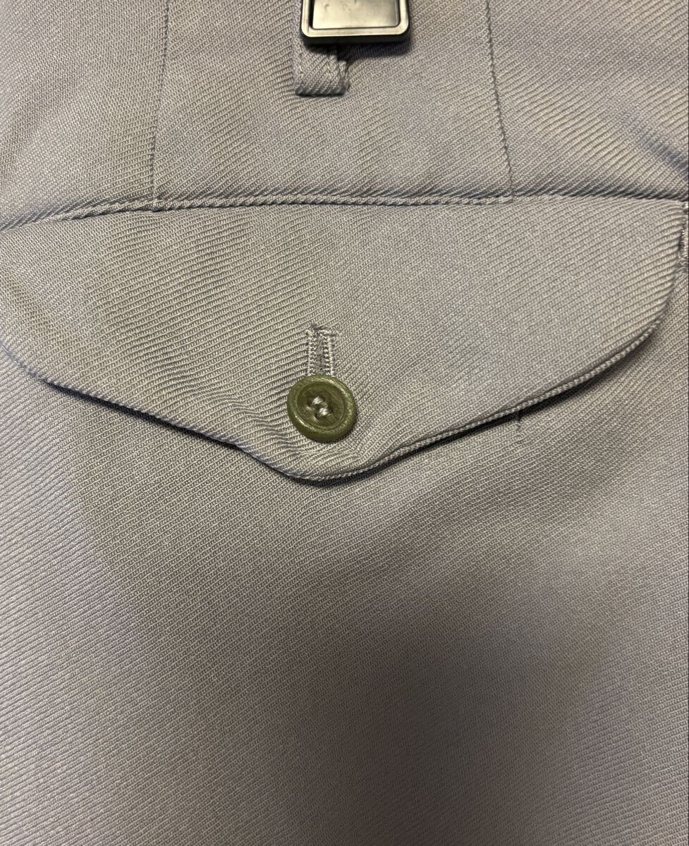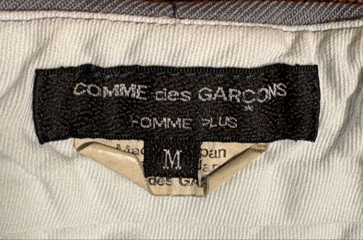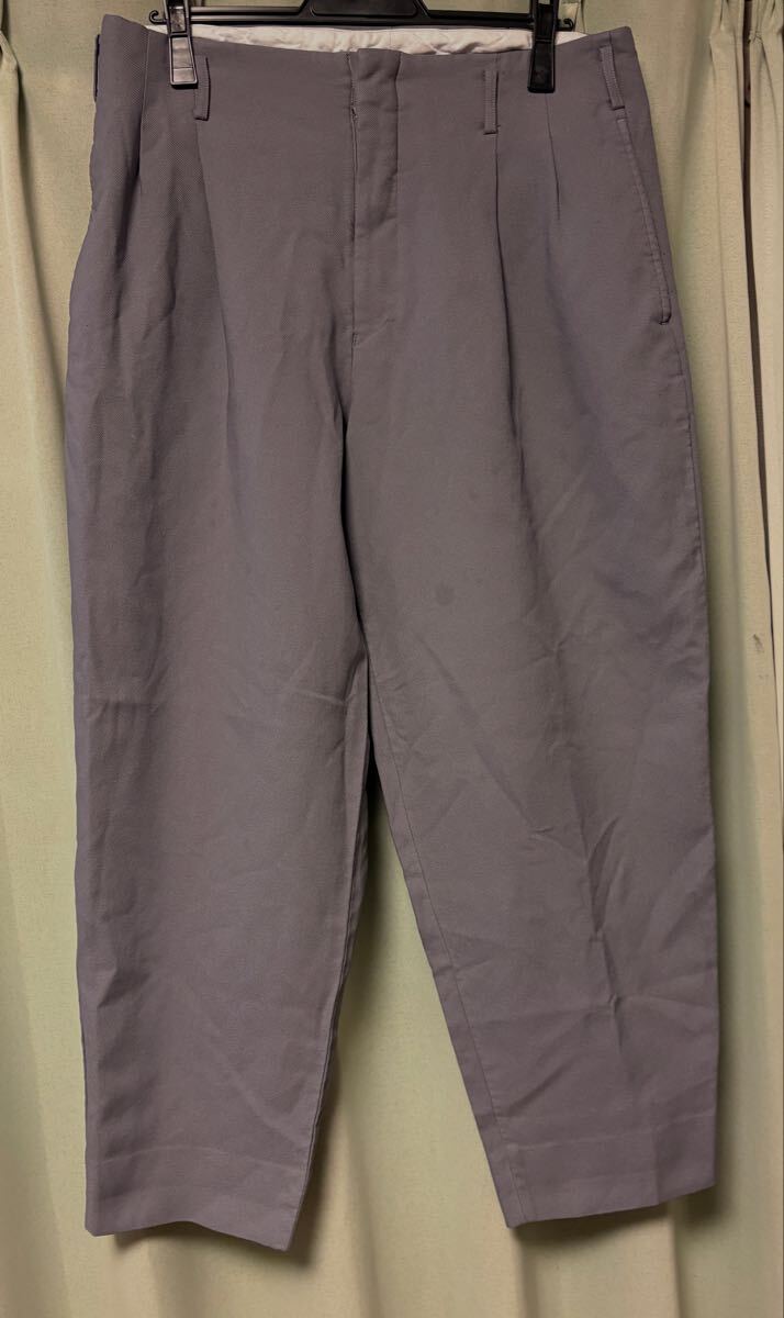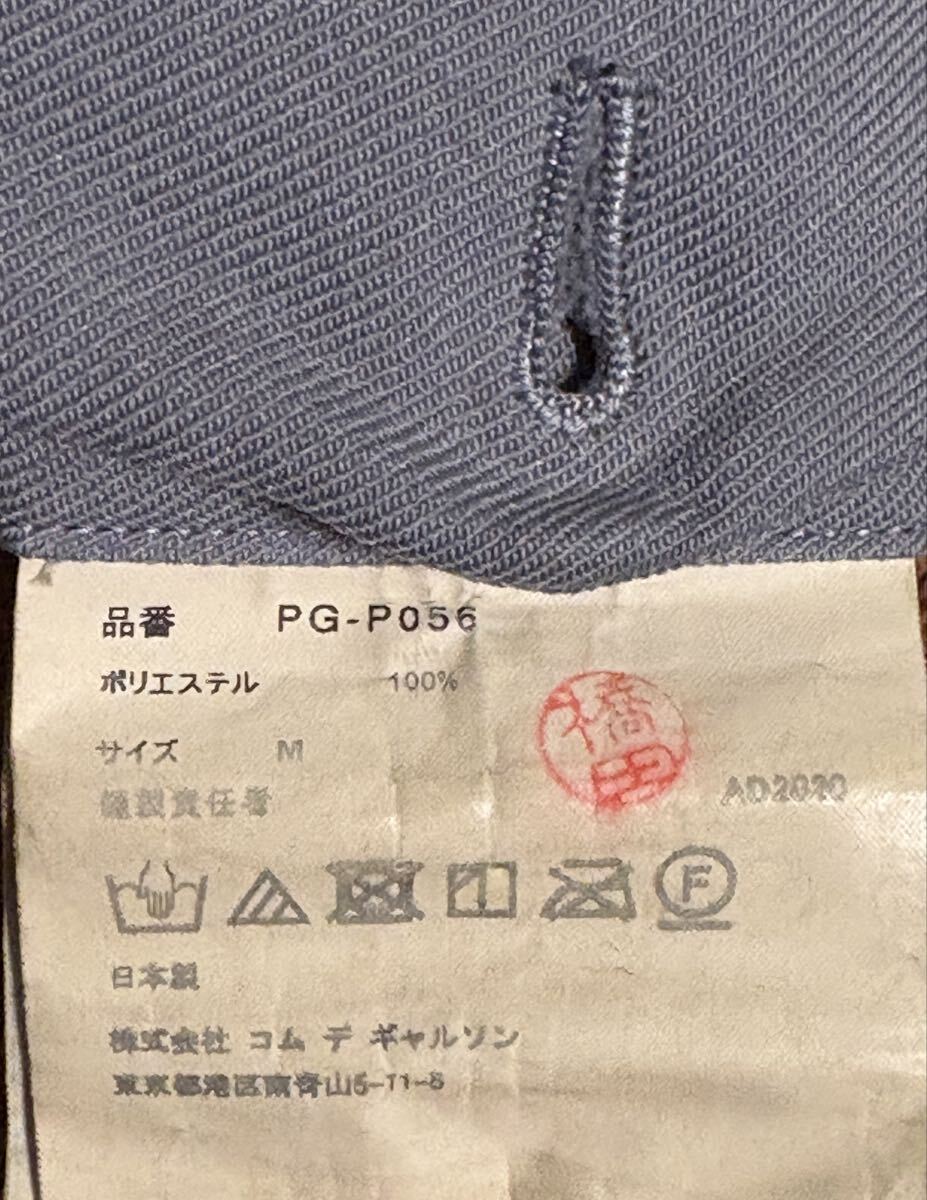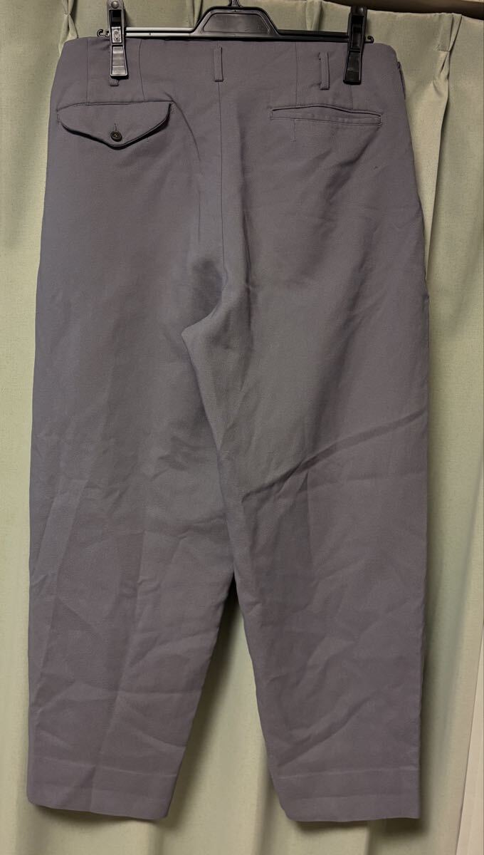 コムデギャルソン オム プリュスの定番の柔らかなポリエステル縮絨、そしてシルエットもこれまた定番のツータックパンツです。このシルエットは最近のコレクションでも使われています。