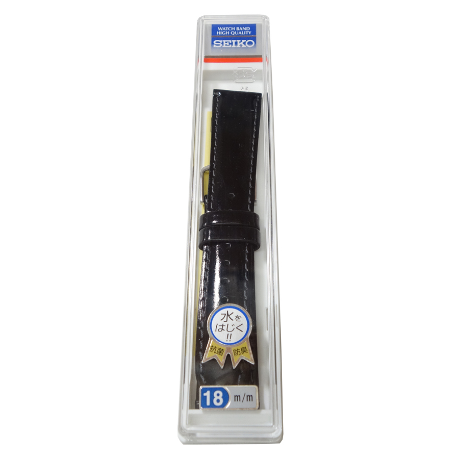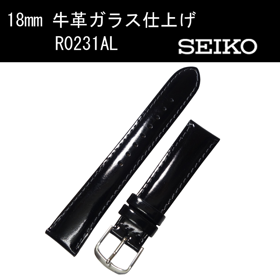 | 新品未使用国内正規品 牛革ガラス仕上げ メーカー:セイコー メーカー品番:R0231AL 希望小売価格:3,800円+税 カン幅:18mm 美錠幅:16mm 厚み:3.0mm 長さ:美錠側 70mm(美錠含まず) 剣先側 115mm 形状:甲丸タイプ 色:黒 裏材:テグラン 美錠材質:アルミ 現在銀色の尾錠がついておりますが、御希望で金色に交換させていただきます。 尾錠のデザインが変わる場合があります。 特にご連絡がない場合は写真の現状の銀色での発送となります。 | ||