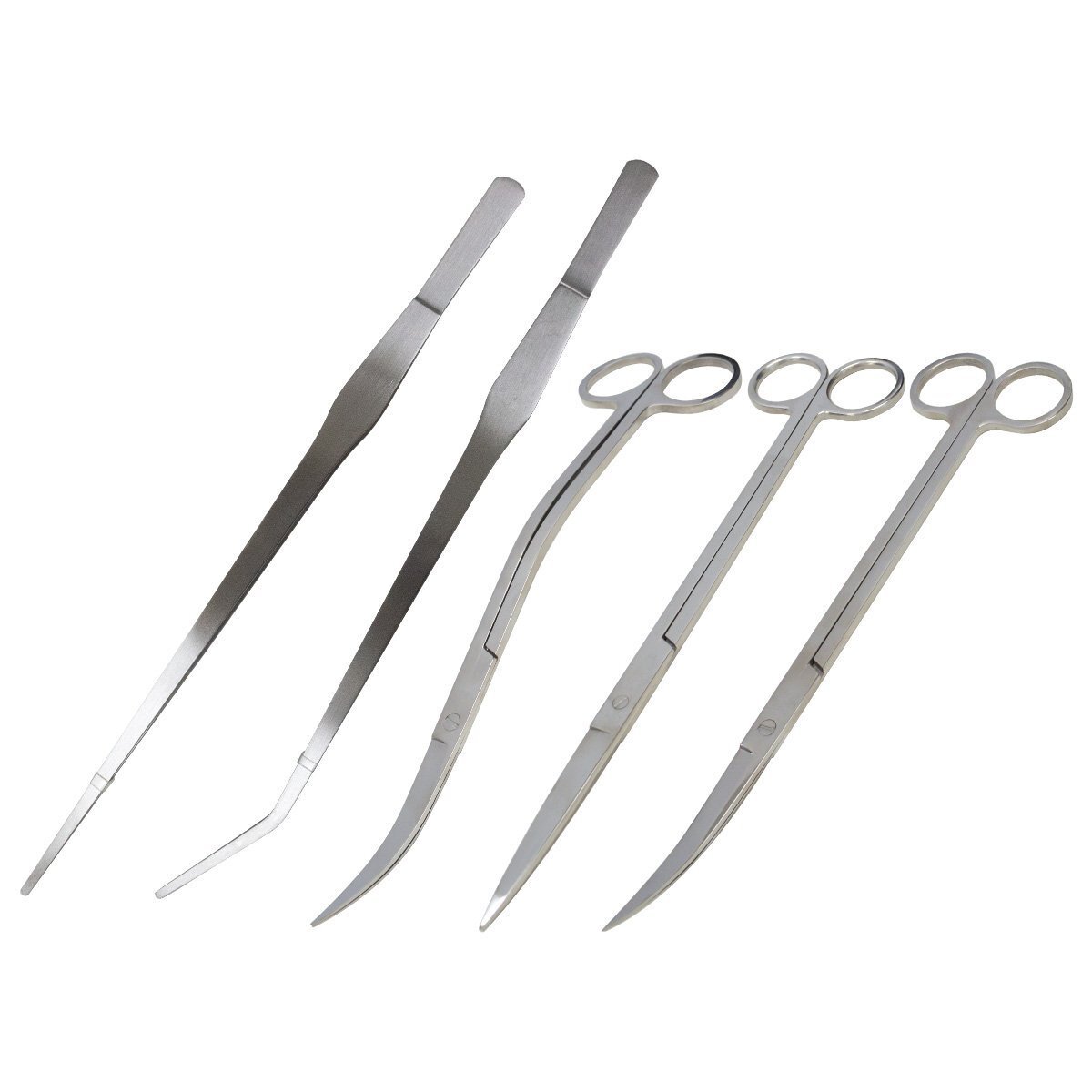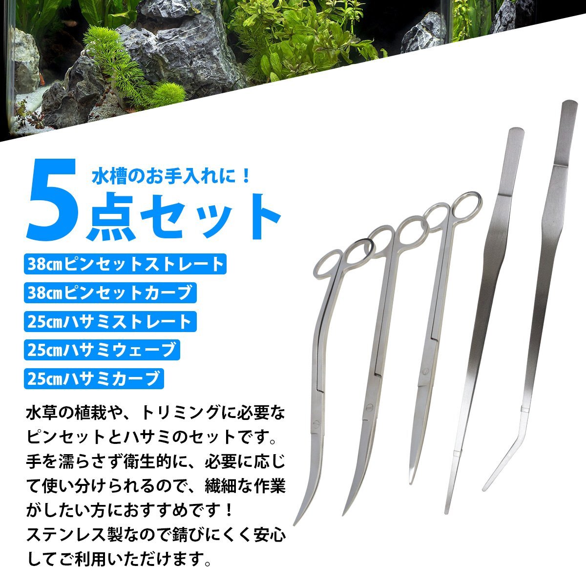 5点セット 『 38cm 380mm ピンセット 2種類 & 25cm 250mm ハサミ 3種類 』 水槽 水草トリミングキット
