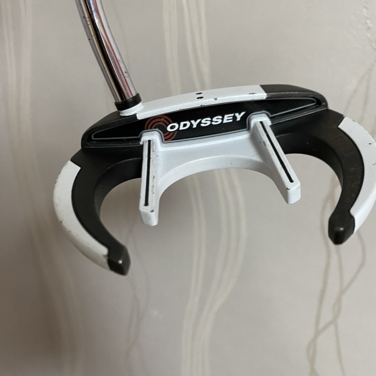 ODYSSEY VERSA SABERTOOTHパター、ブラック/ホワイトのデザインで、精密なストロークを実現。