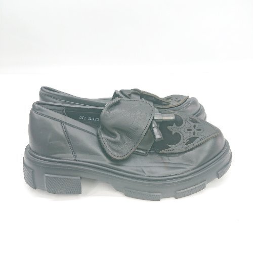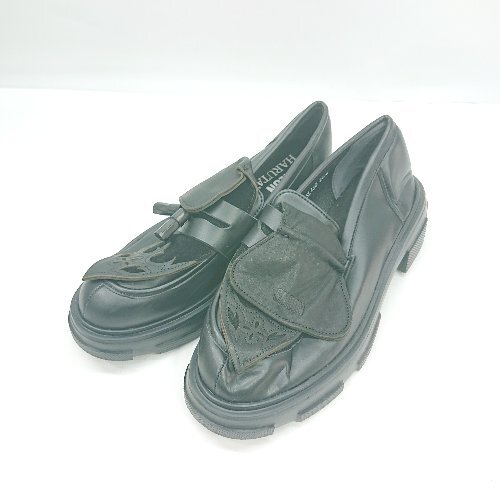 ◇ Θ SIIILON HARUTA 総柄 フリンジ装飾 ローファー サイズ241/2 ブラック レディース メンズ E