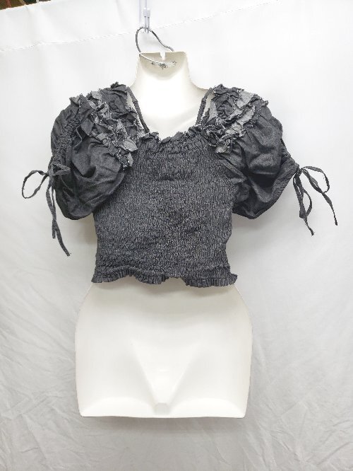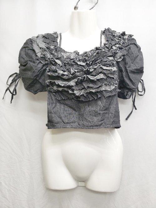 ◇ ⊂ NICE CLAUP ナイスクラップ ショート丈 半袖 フリル ブラウス サイズF ブラック系 レディース メンズ P