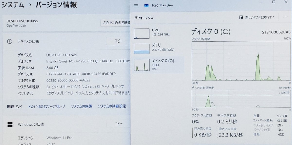 ■■■ 商 品 名 ■■■ ● DELL OPTIPLEX 7020 ■■ 製 品 仕 様 ■■ CPU:Intel(R) Core(TM)i7-4790@3.60GHz メモリ:8GB HDD:1TB 光学ドライブ:DVD マルチレコーダ OS:Windows11Pro 64bit(要件回避クリーンインストール) 寸法:31cm*29cm*9.5cm (梱包サイズ100サイズ) 付属品:なし(本体のみ) ■■ 動 作 状 態 ■■ 当方所有のUSBメディアにてデータ消去および Windows11のクリーンインストールを行っております。 ライセンス認証は行っておりませんので 落札者様のお持ちのライセンスでご対応をお願いいたします。 ★OSについて 当品は本来Win11のインストールができないものにクリーンインストールを行ったPCです。 そのため購入後のOS更新につきましては自己責任の上での使用をお願いしております。 その他:全体的に小さい擦り跡がある状態です。 簡易清掃のみ行っておりますので取り切れない汚れやほこり、 細かいキズやゴム足などの部分欠損についてはご容赦ください。 神経質な方は入札をご遠慮ください | ||||||||||||||||||||||||||||||||||||||||||||||||||||||||||||||||||||||||||||||||||||||||||||||||||||||||||||||||||||||||||||||||