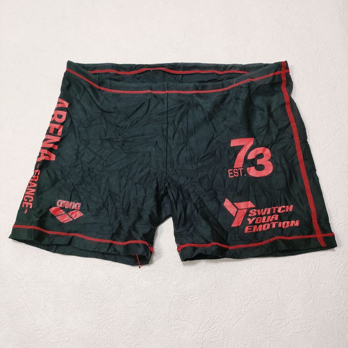 64*アリーナarena男子競泳水着(O)★SAR-4109 タフスーツ★光沢ブラック黒レッド赤ステッチライン ロゴ★伸縮性あり