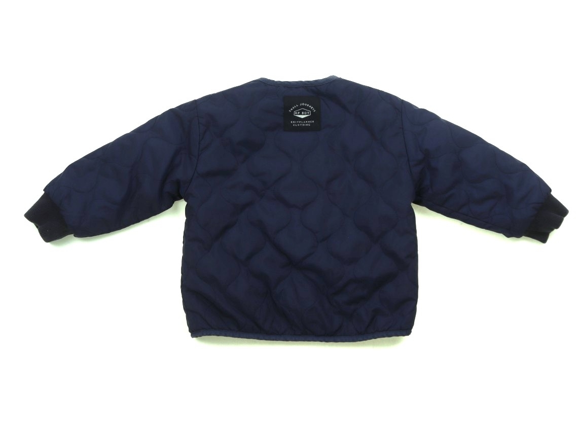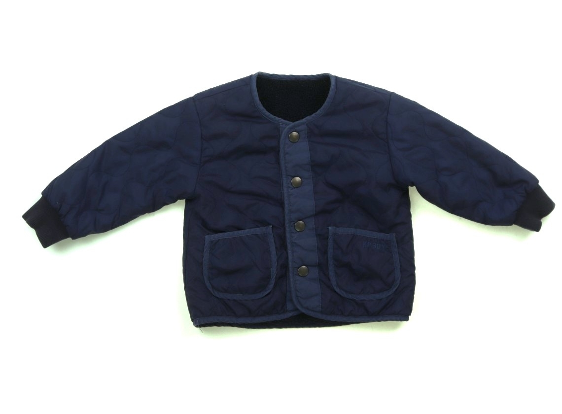 ポリエステル素材。中綿入り。裏地はテディボア素材。リバーシブル仕様。スナップボタン開き。パイピングと袖口に色あせあり。洗いざらし感があります。