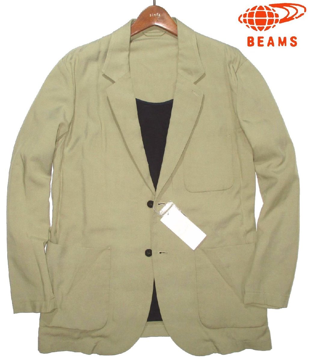 新品 秋物 M 定価1.76万▼ ビームス BEAMS LIGHTS レーヨン リネン 麻 ルーズフィット テーラードジャケット ジャケット カーキ オリーブ