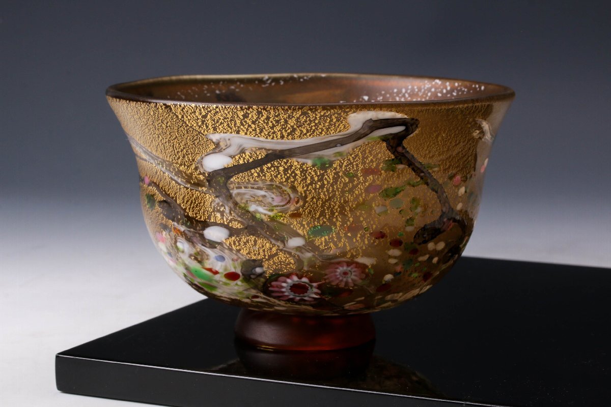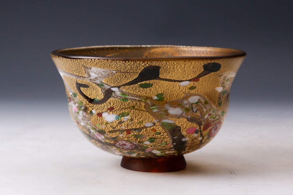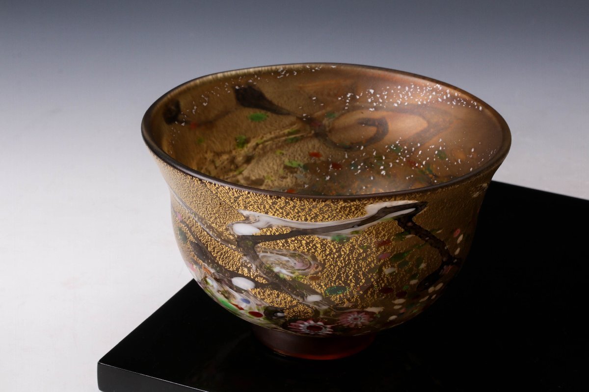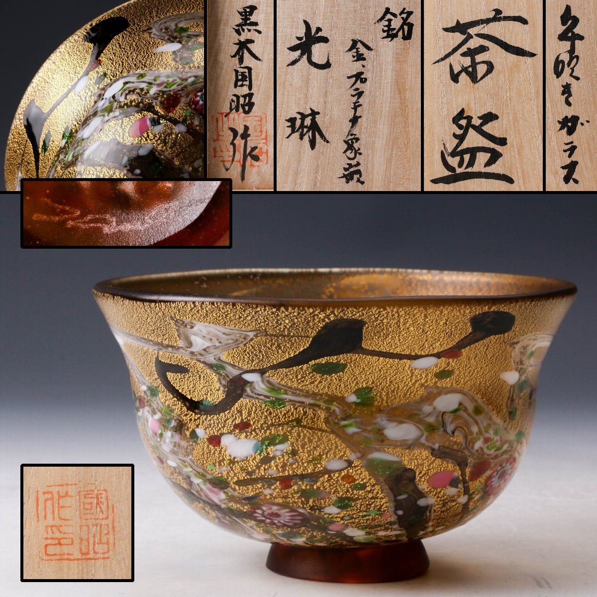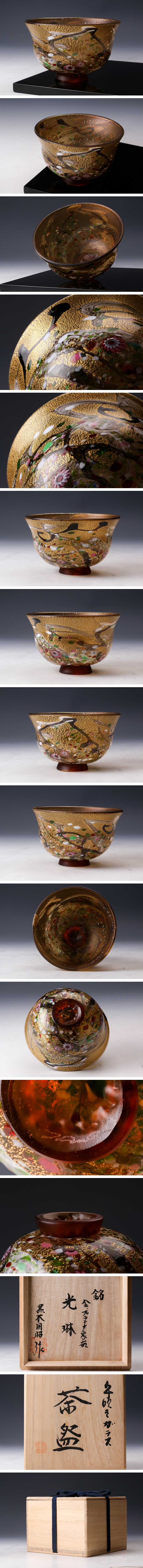 【佳香】黒木国昭 最上位作 金プラチナ象嵌手吹きガラス茶碗 銘『光琳』 共箱 茶道具 本物保証
