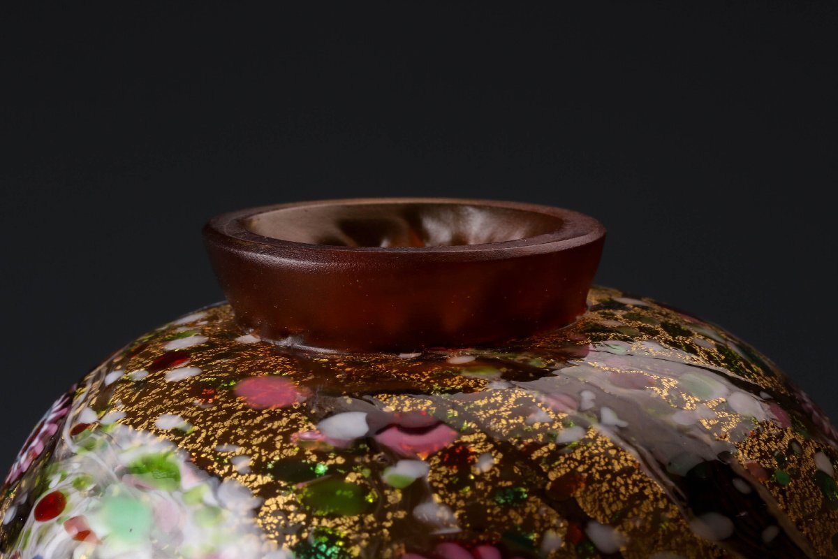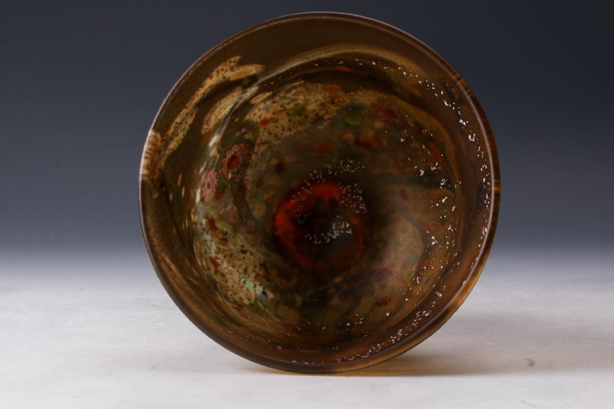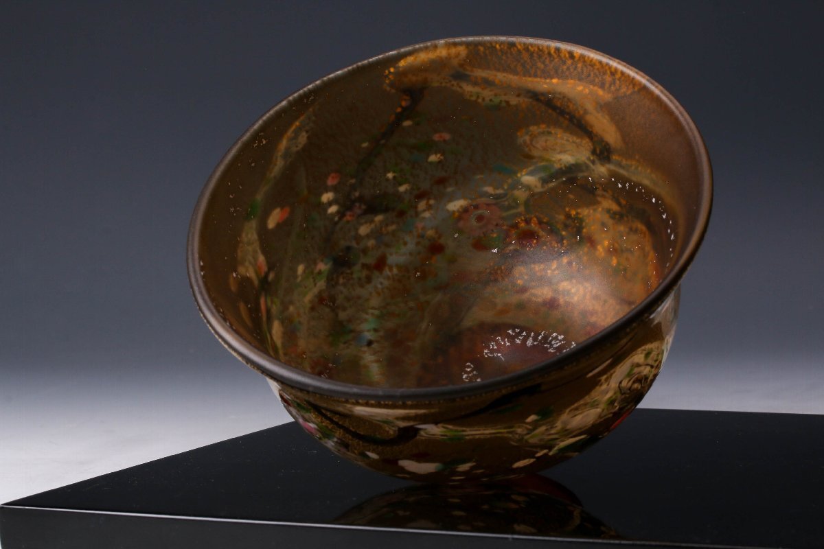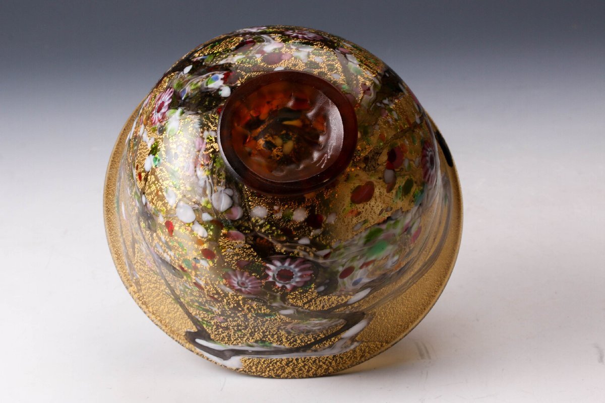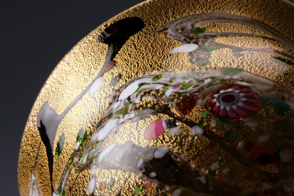 【佳香】黒木国昭 最上位作 金プラチナ象嵌手吹きガラス茶碗 銘『光琳』 共箱 茶道具 本物保証
