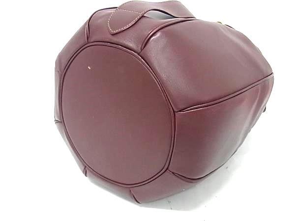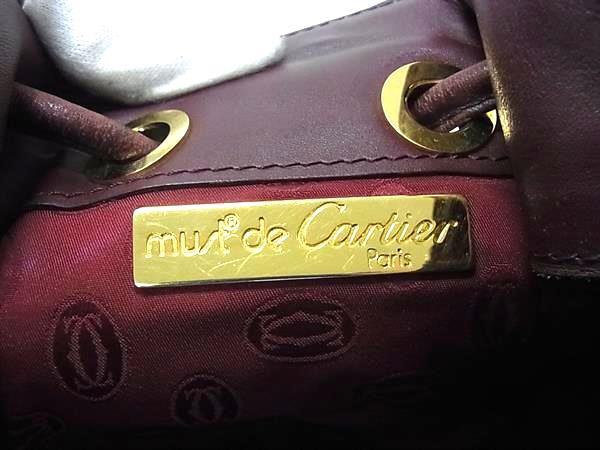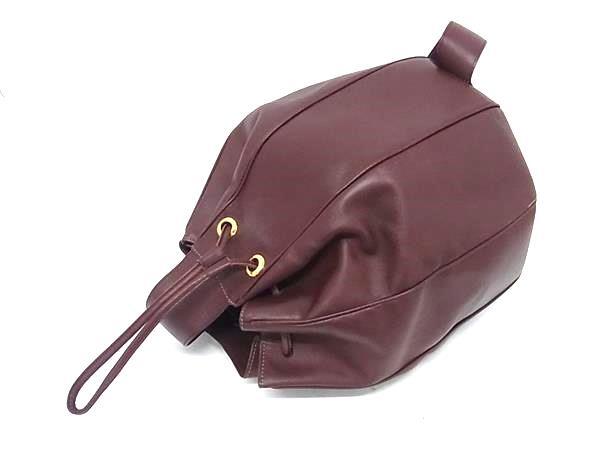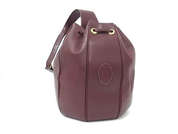 1円 Cartier カルティエ マストライン レザー 巾着型 ショルダーバッグ 肩掛けかばん レディース メンズ ボルドー系 FS7512