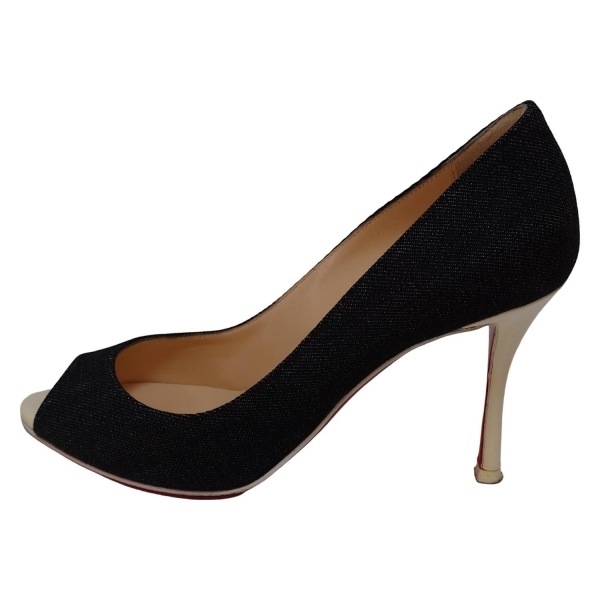 クリスチャンルブタン CHRISTIAN LOUBOUTIN パンプス 35 - レザー 黒×アイボリー レディース オープントゥ/アウトソール張替済 靴