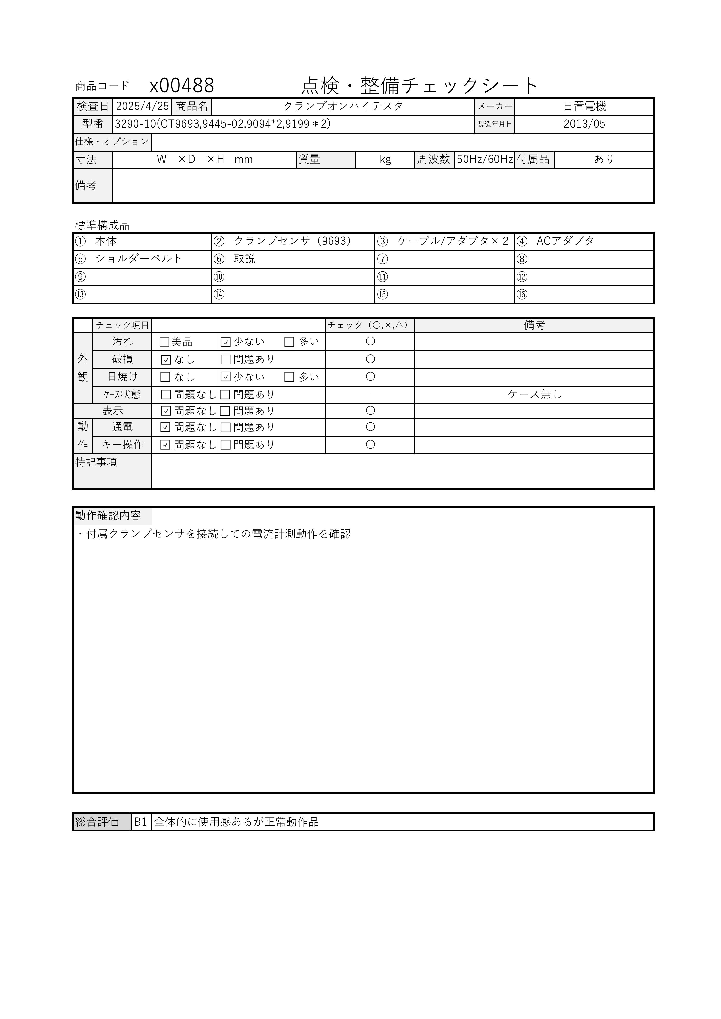 本体、クランプセンサ(9693)、ケーブル/アダプタ×2、ACアダプタ、ショルダーベルト、取説