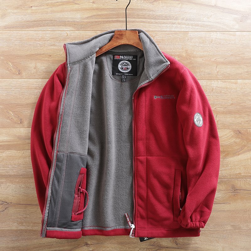 欧米サイズ 新品 ジャケット デザイナーズ フリース 暖かさ 裏ボア 厚手 メンズ シェニール 秋冬 フリース ブルゾン アウター 赤 T5168-L