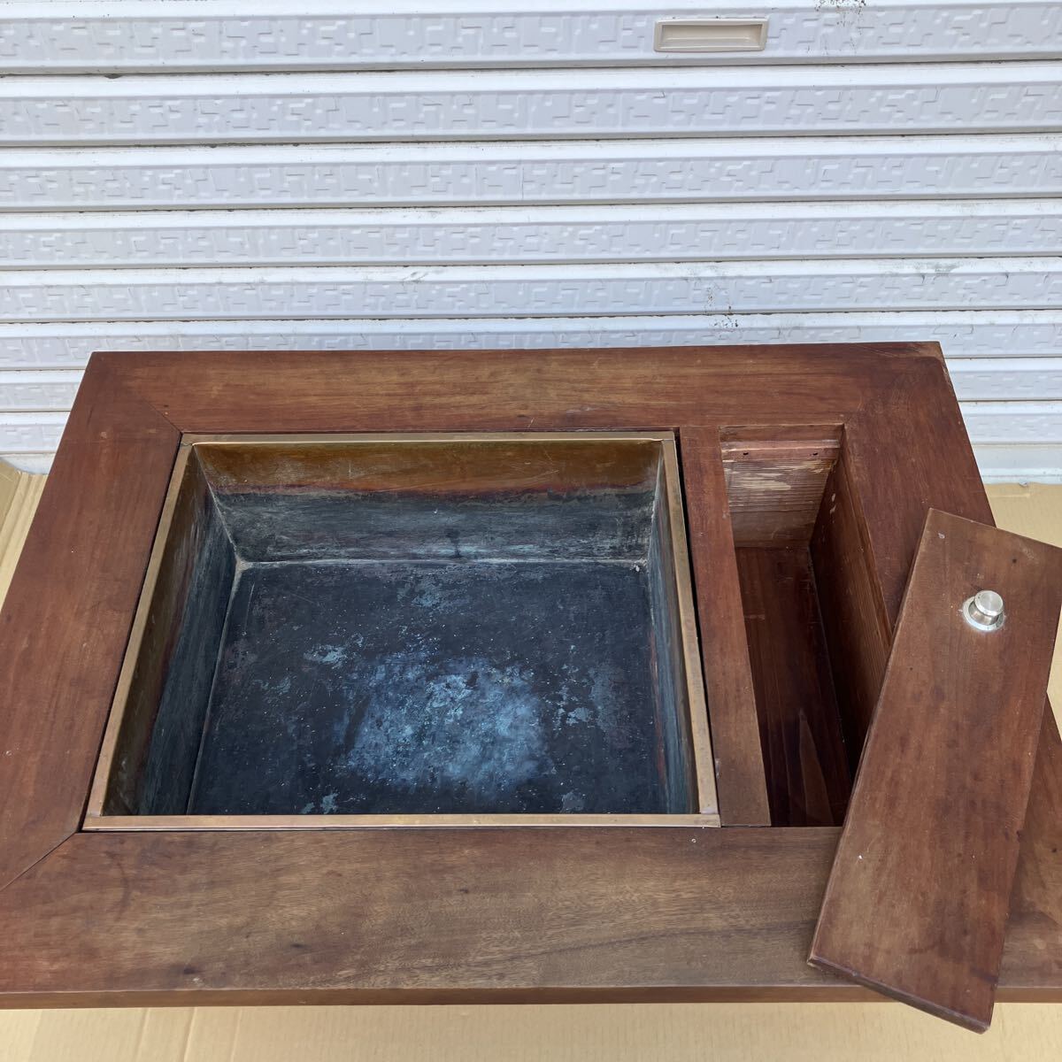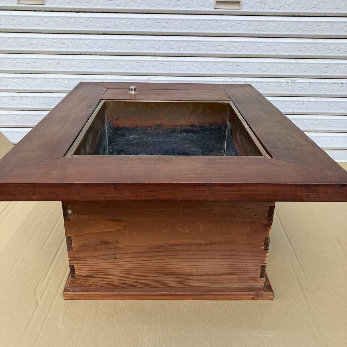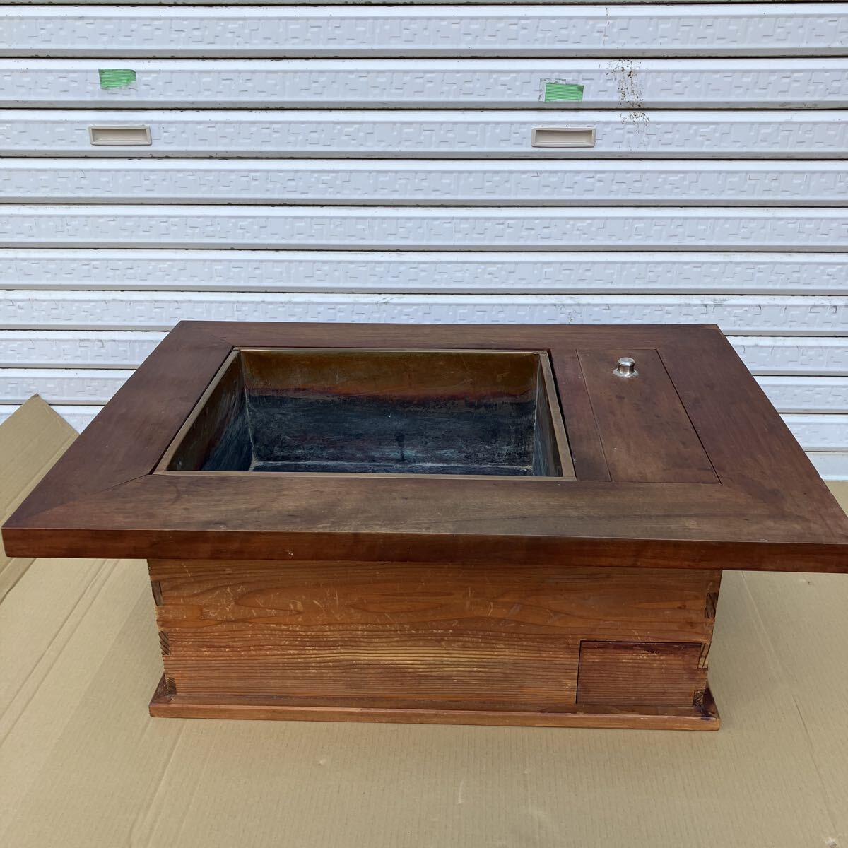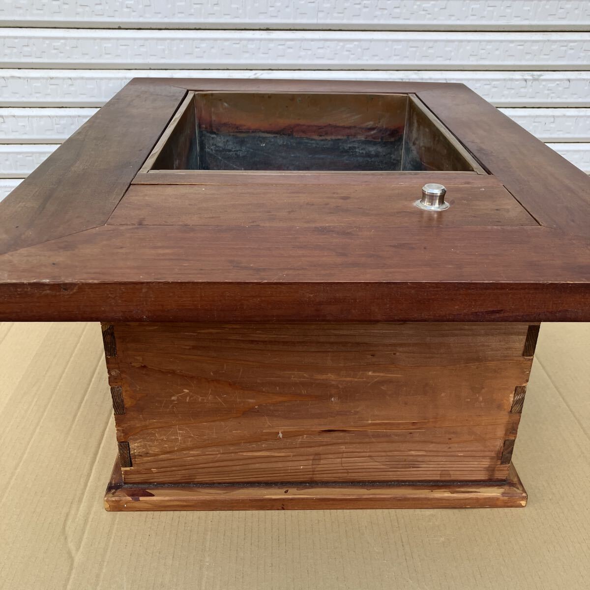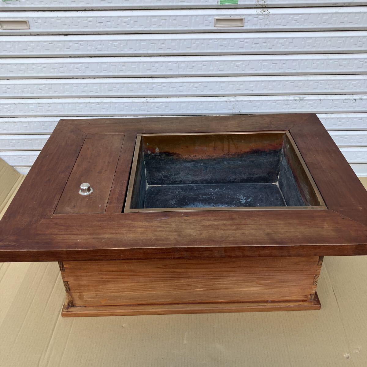 古民具 木製火鉢 囲炉裏 長火鉢 幅73 奥行53.5 高さ27.5cm 電熱火鉢 囲炉裏テーブル アンティーク レトロ 古民家インテリア 収納付き 銅炉