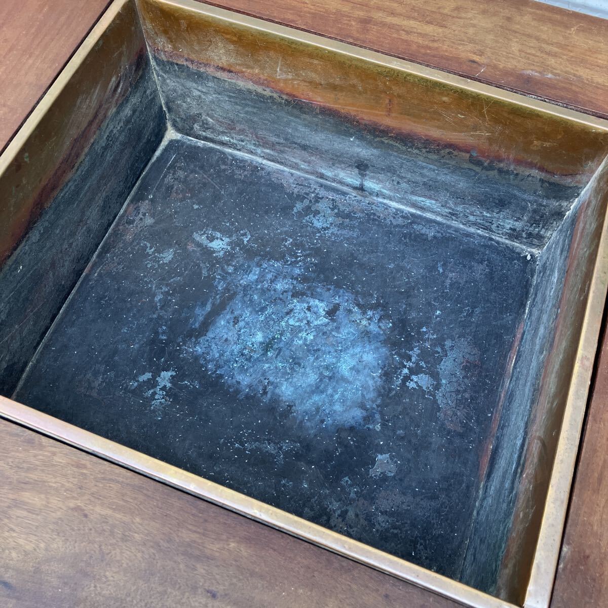中央の火鉢部分は銅製で、経年による緑青が良い雰囲気を出しています。