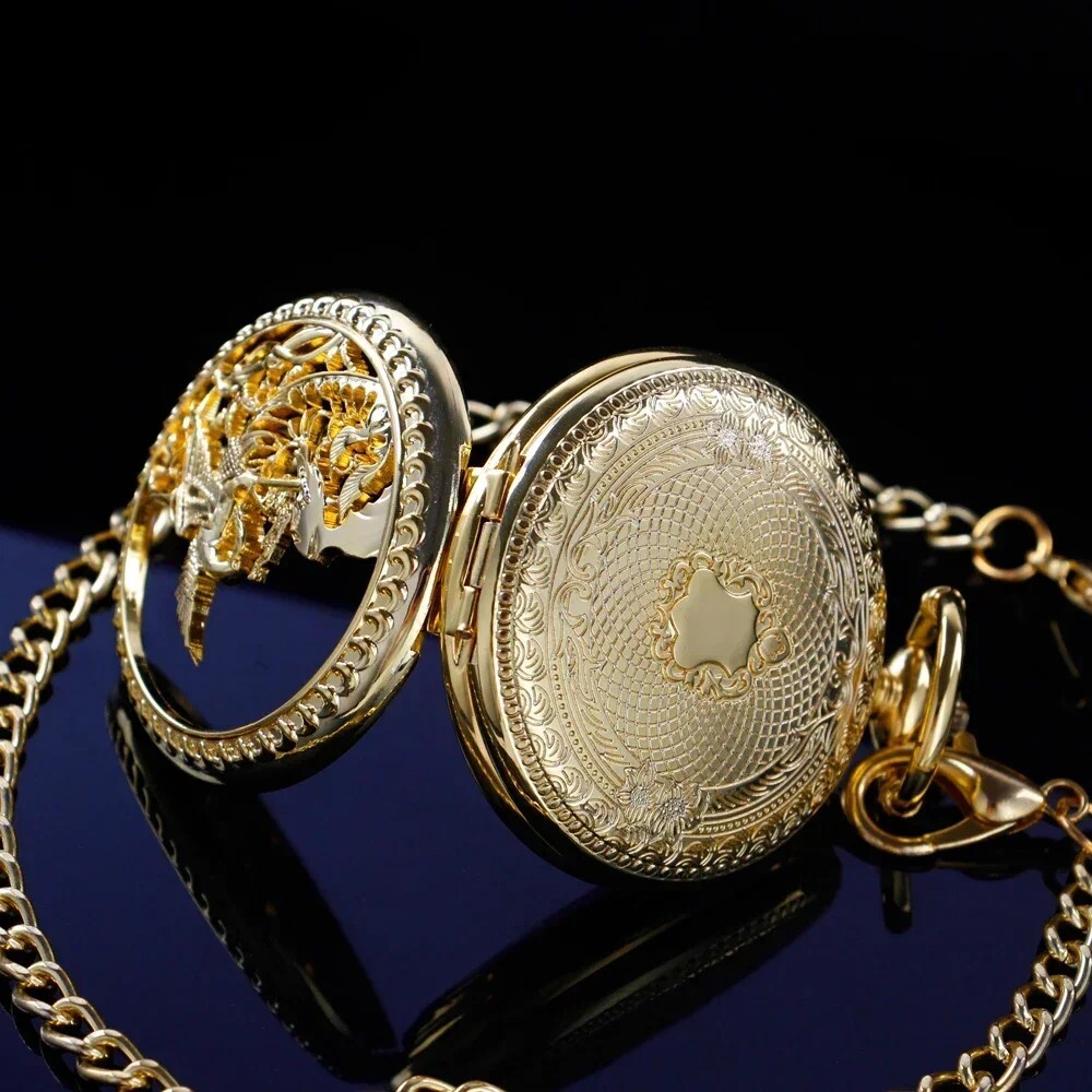 特価 新品 未使用 懐中時計 機械式 手巻き メンズ レディース ユニセックス アナログ アンティーク ステンレス レトロ 鳥 金色 c5488