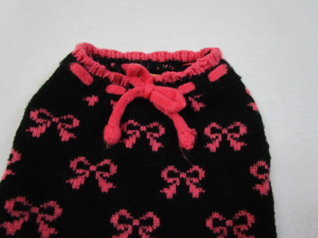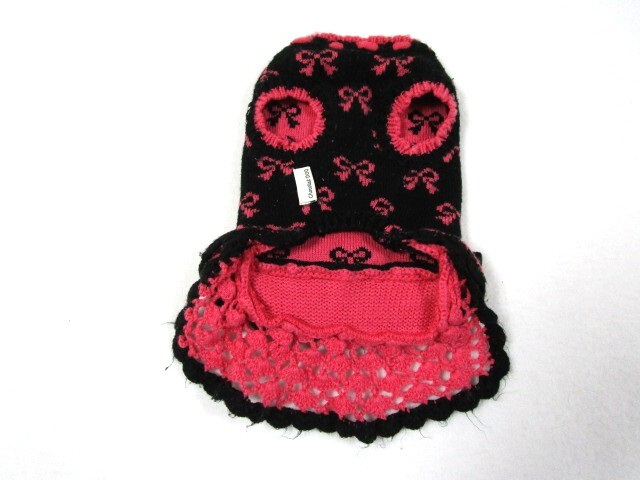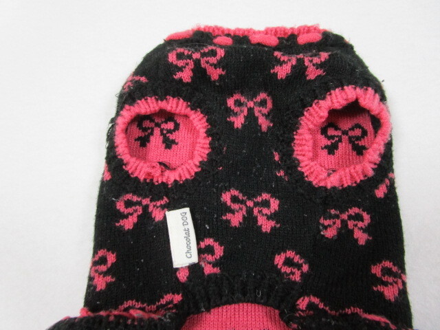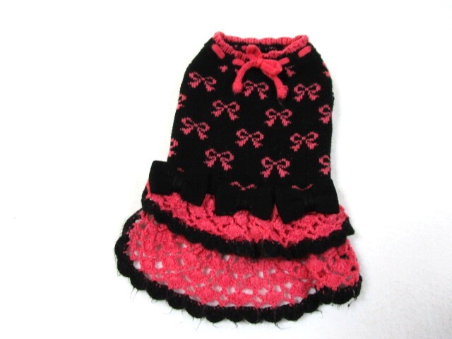 ペットパラダイス 3Sサイズ 胴回り31cm リボン柄 ニットワンピース ブラック・リボン 中古