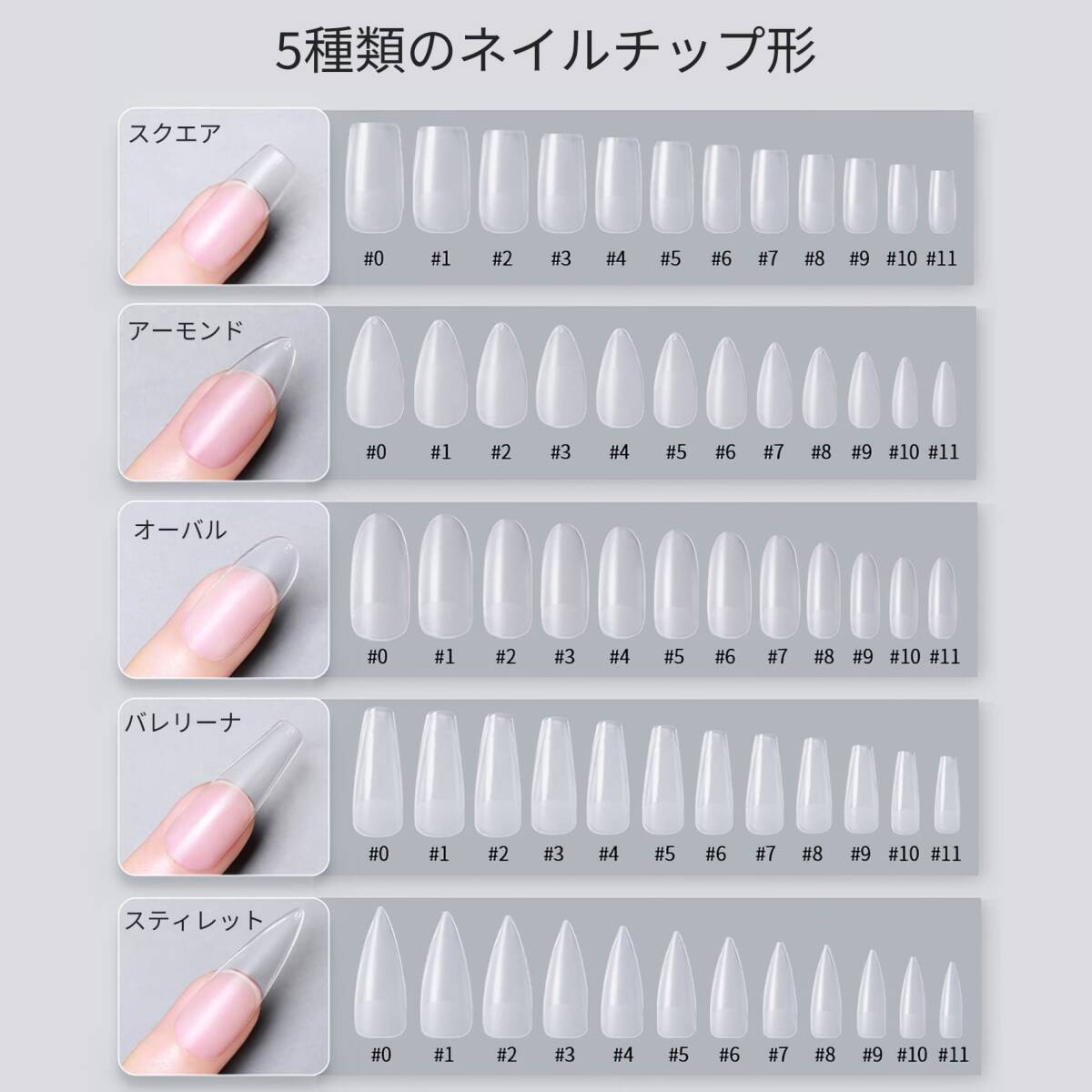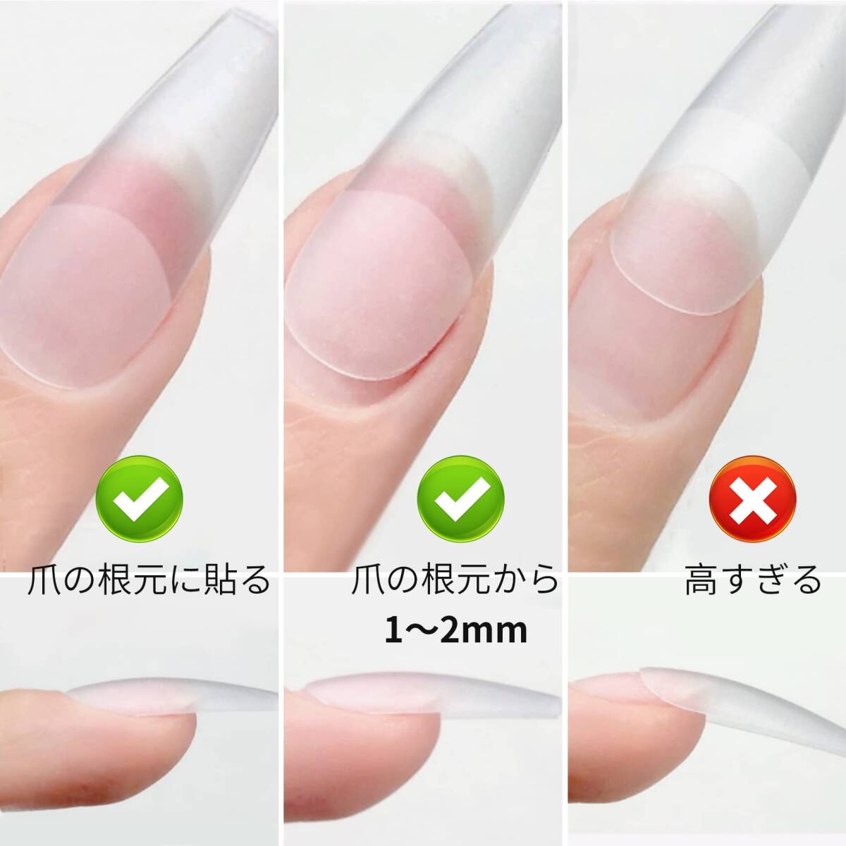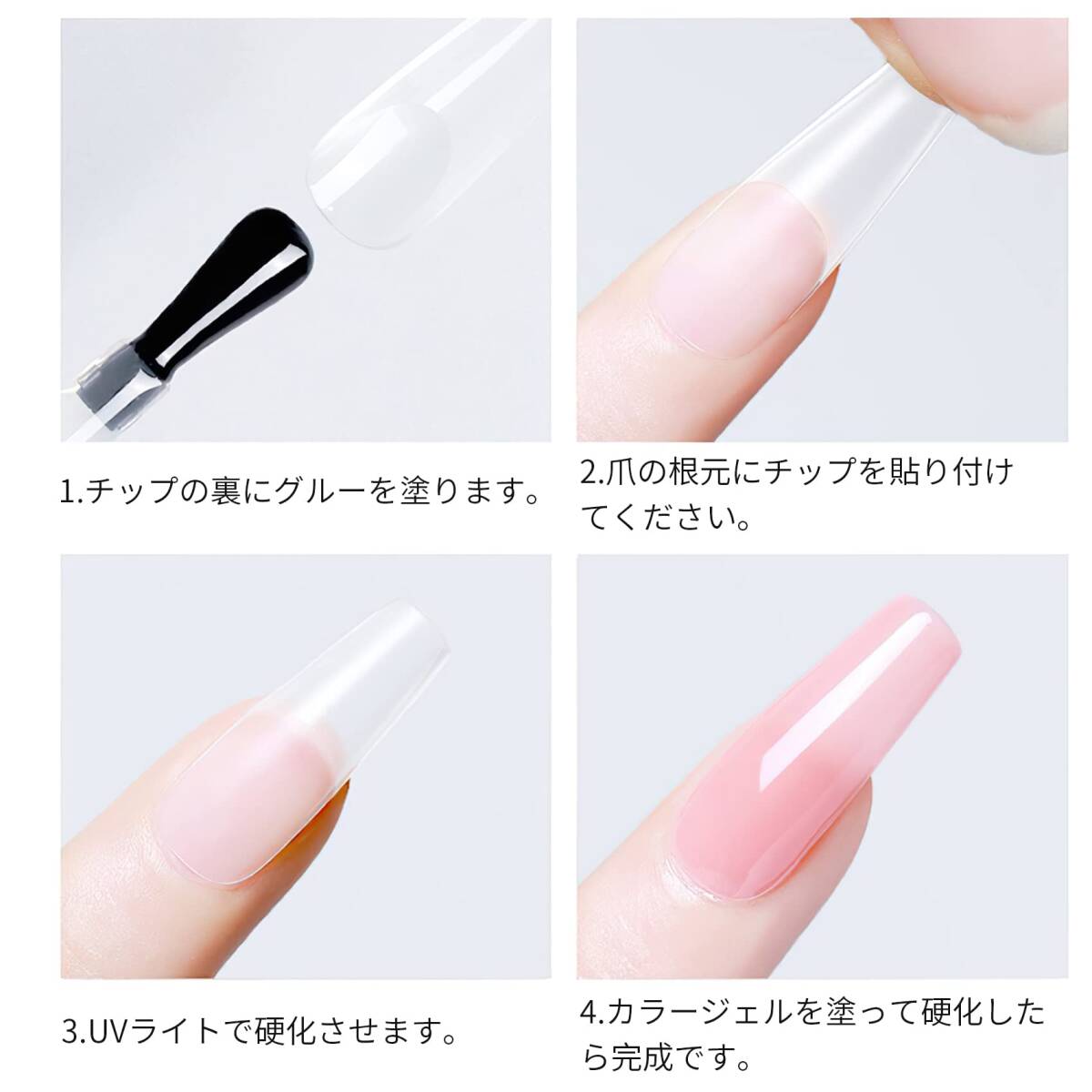 自然なフィット感 透明ネイルチップ 長さだし ジェルネイル つけ爪 クリアネイルチップ 業務用 クリアチップセット ネイル 練習用