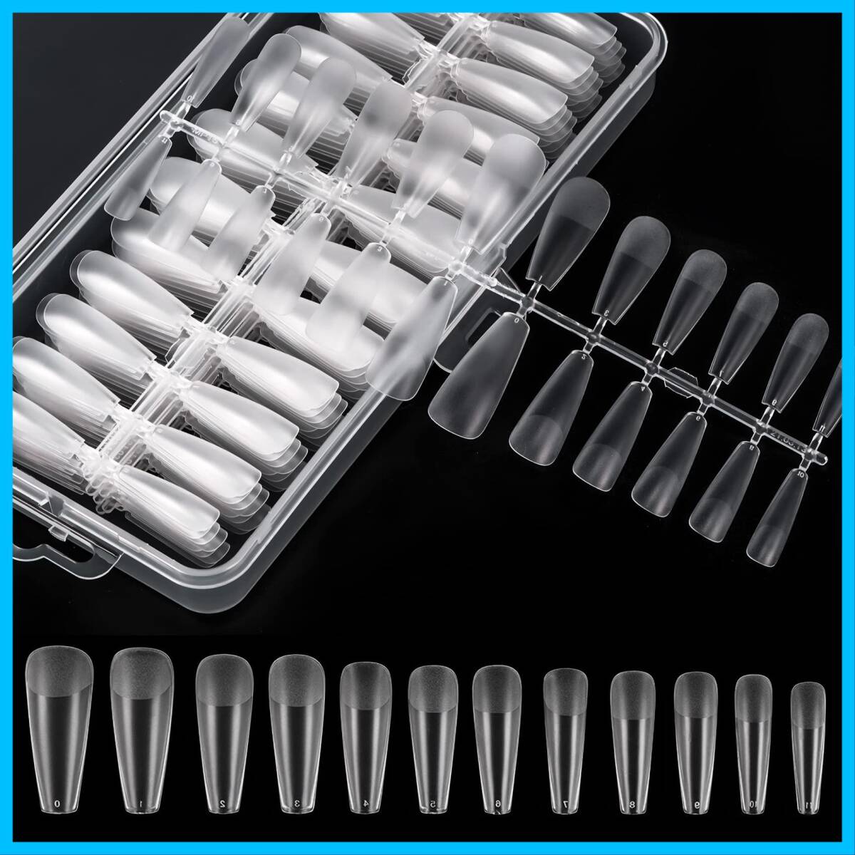 大容量で実用:バレリーナ型ネイルチップセットです。12種類のサイズで様々な自爪のサイズに対応可能、合計240枚入り。付け爪、練習用どちらにもお使いいただけます。
