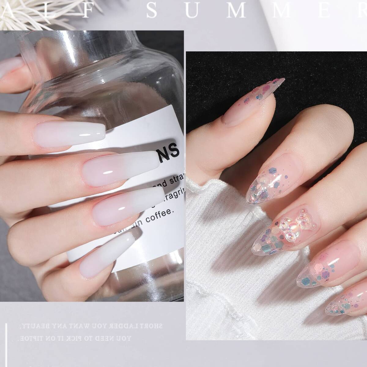 幅広い使用:たっぷり使える大容量なので、サンプルの作成やネイルチップの練習等、幅広くご使用いただけます。セルフジェルネイル用でもプロのサロン用にも最適です。また、ネイルアートが好きな方への理想的な贈り物にもおすすめです。