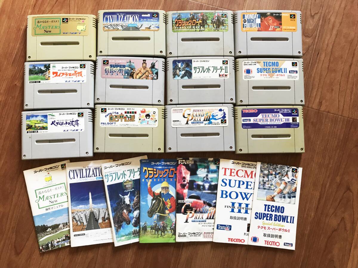 ★スーパーファミコン★ゲームソフト12本セット★信長・競馬・シミュレーション・ゴルフ・F1・アメフト・麻雀☆ジャンク扱い