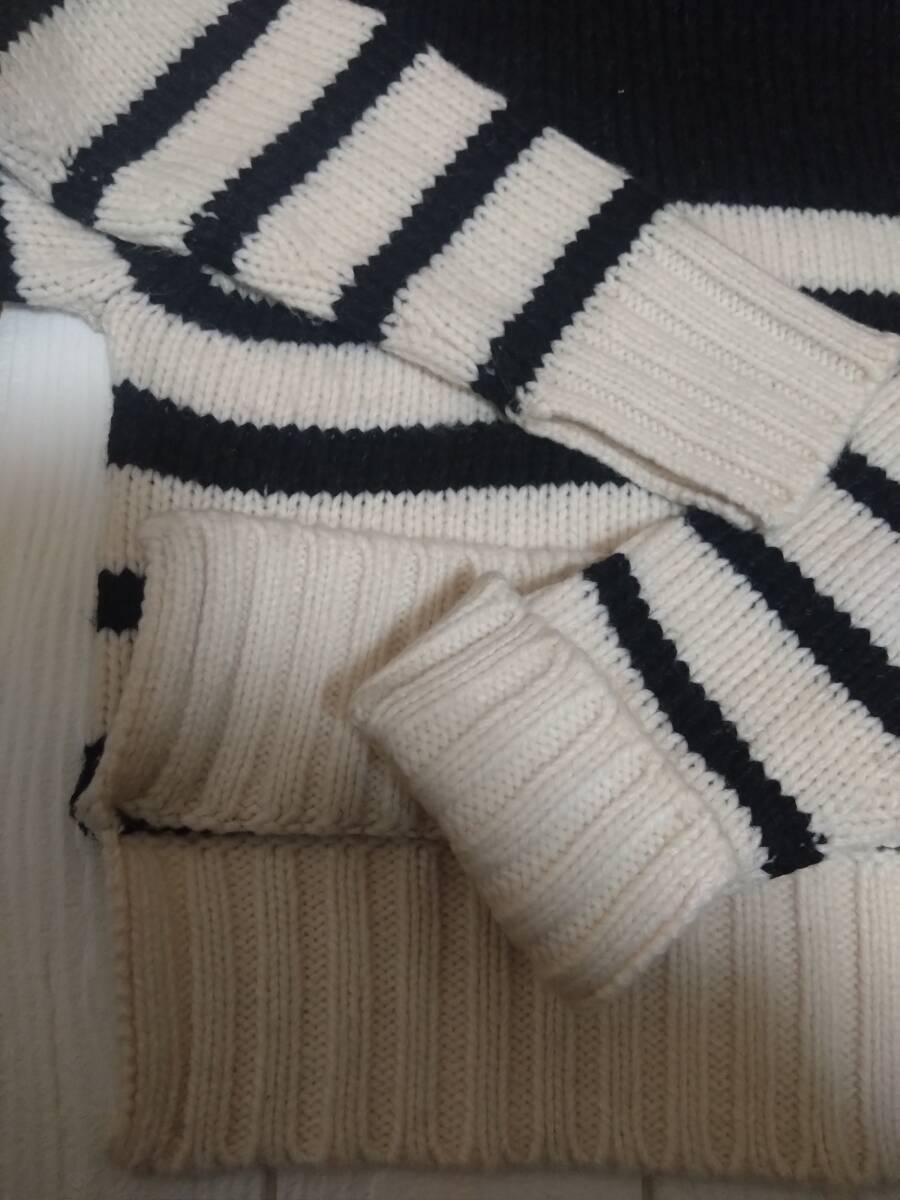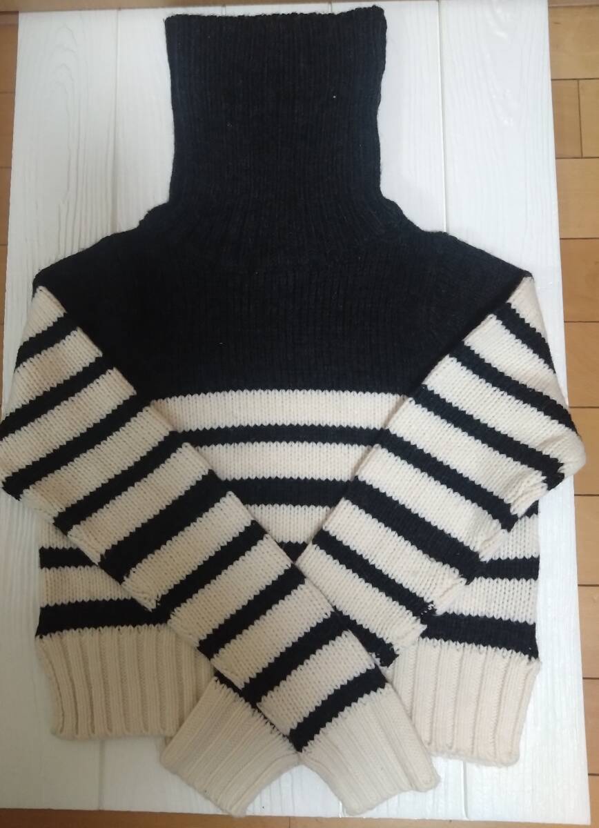 ざっくりふんわり感あるニットで、ネックは長めで暖かそうです。裾両サイドと袖先はスリットになっています。