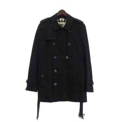 バーバリー BURBERRY 美品 THE KENSINGTON トレンチコート ショート 英国製 イングランド製 裏地ノバチェック 黒 ブラック 46 M位