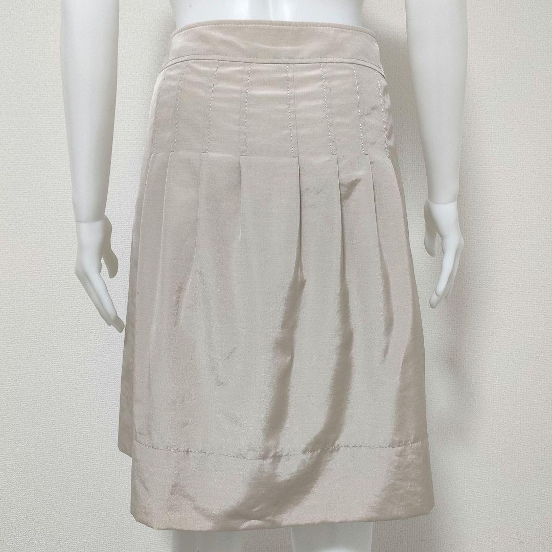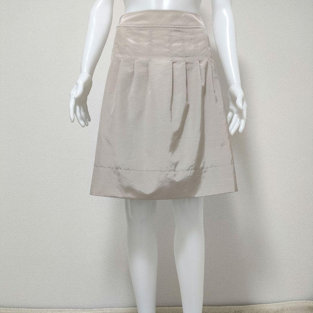 【美品】UNTITLED アンタイトル シャイニータックフレアスカート サイズ1 Sサイズ ベージュ レディース 上品 台形スカート ベージュ
