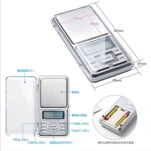 0.01g~500gで 精密軽量!デジタル ポケットスケール LEDバックライト 量り 計り はかり 秤 デジタル 計量器 業務用 (プロ用)