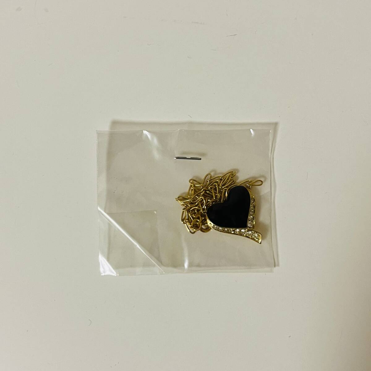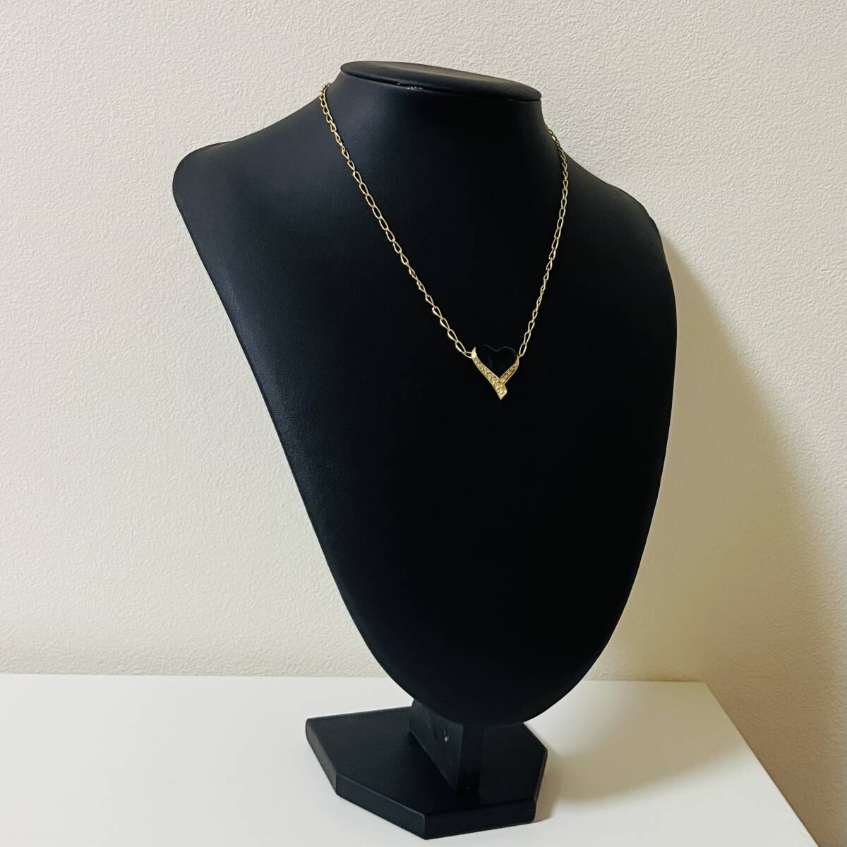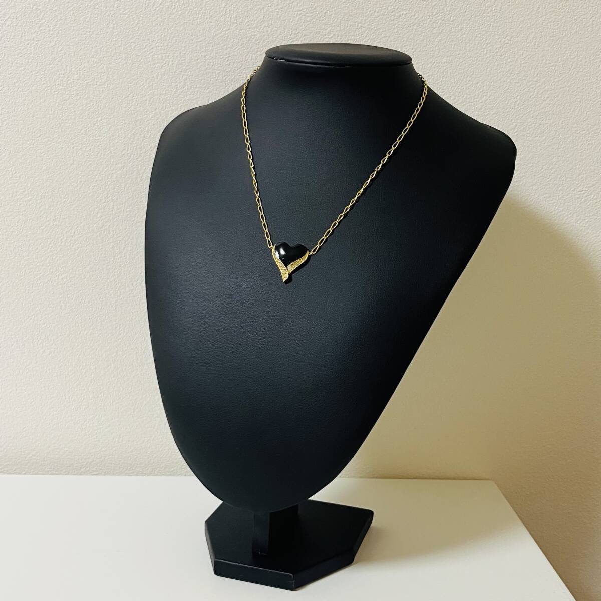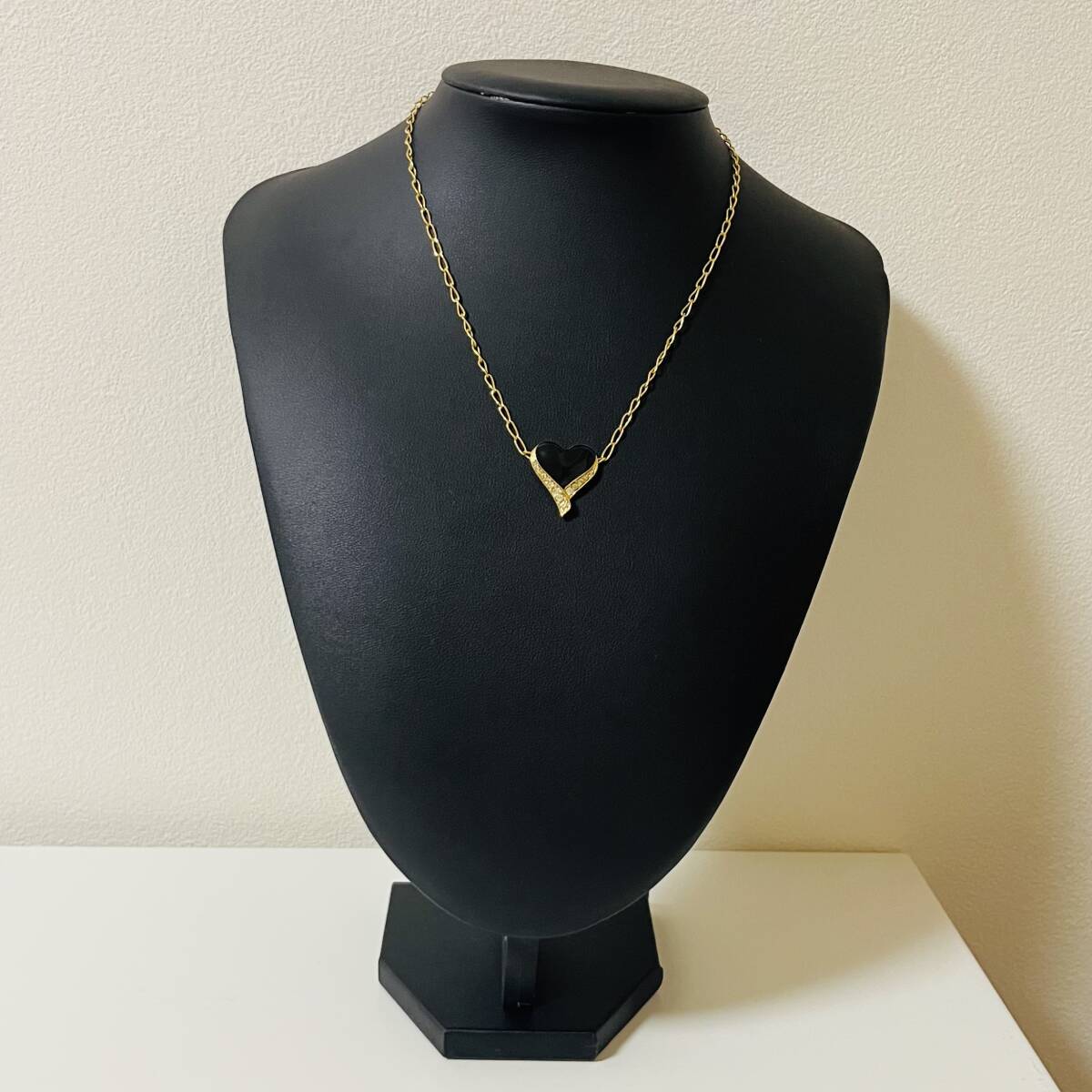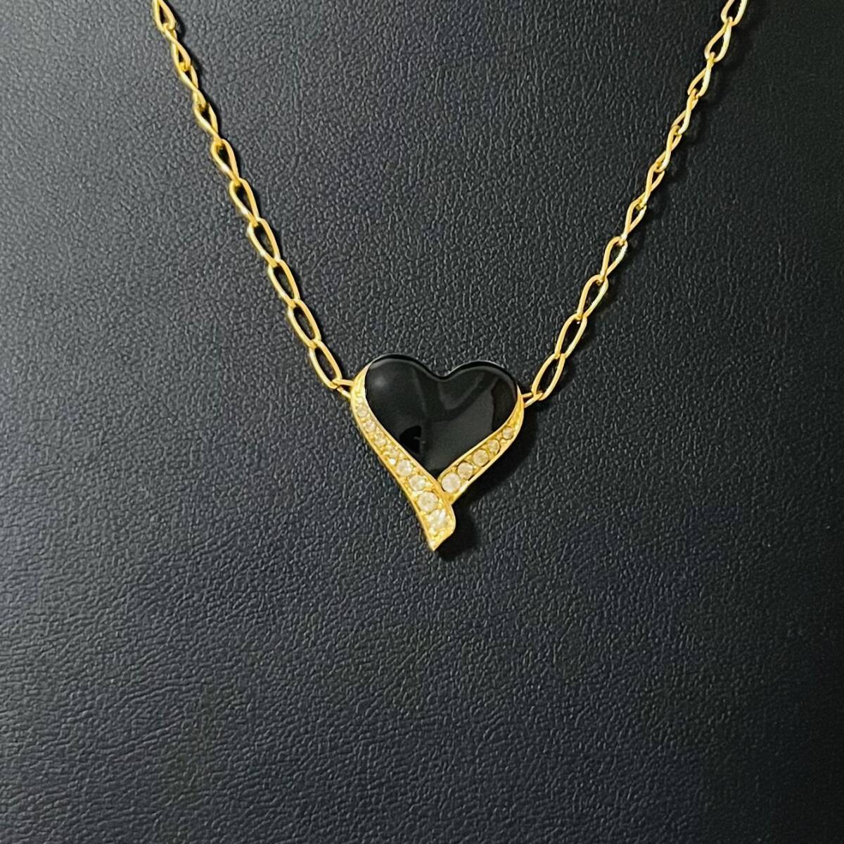 800 アンティーク ビンテージ コスチュームアクセサリー ネックレス 刻印入り 未使用保管品! ゴールドカラー ラインストーン ハート 黒 かわいい 海外製